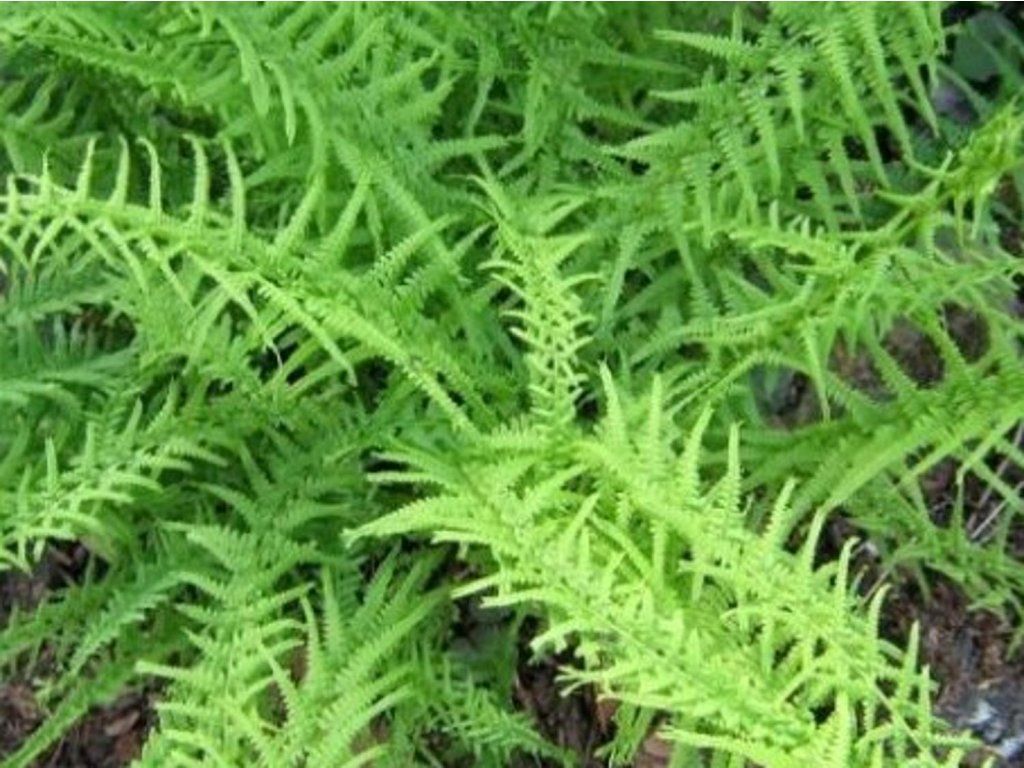 Frauenfarn 'Victoriae' - langsam wachsender Frauenfarn, der eine Höhe von 90 cm erreicht. Bei ausreichender Luftfeuchtigkeit wächst er gut im hellen Schatten. Die gefiederten Blätter sind leicht verdreht und neigen dazu, sich zu überlappen.