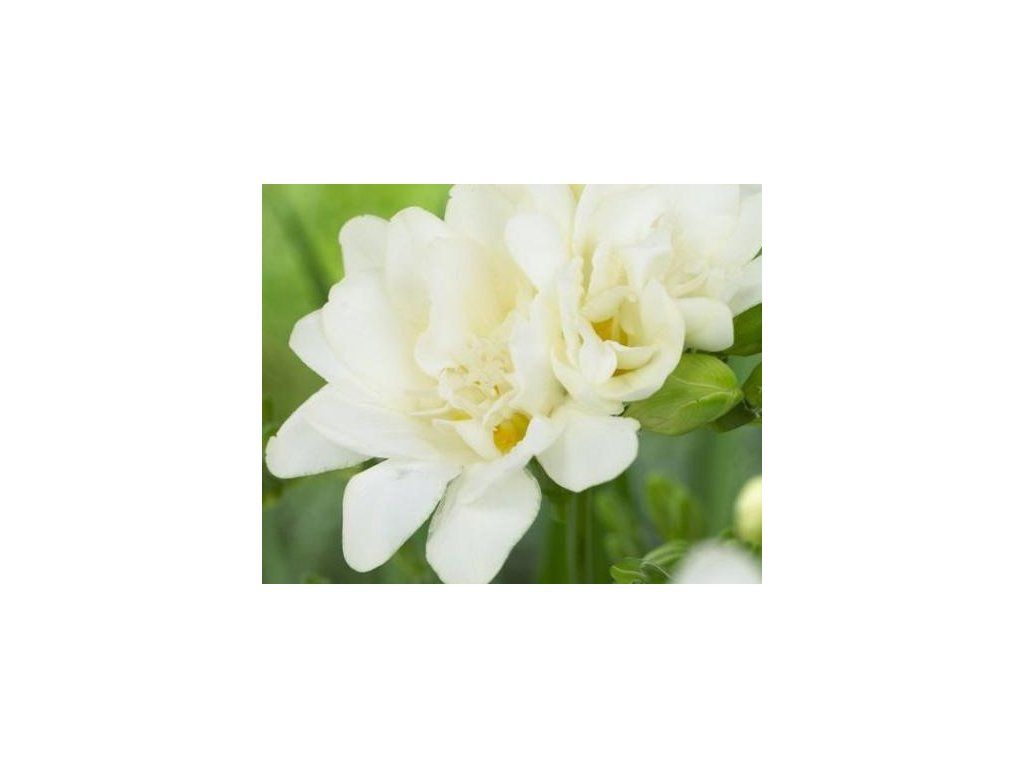 Freesie 'Double White' - Freesie mit reinweißen, gefüllten Blüten, die bis zu 30 cm hoch und 15 cm breit werden. Sie blüht von Juni bis August. Sie duften wunderbar. Für einen größeren Effekt empfehlen wir, mehrere Exemplare an einem Standort zu pflanzen. Sie sehen z.B. wunderschön mit pastellfarbenen Lilien aus.