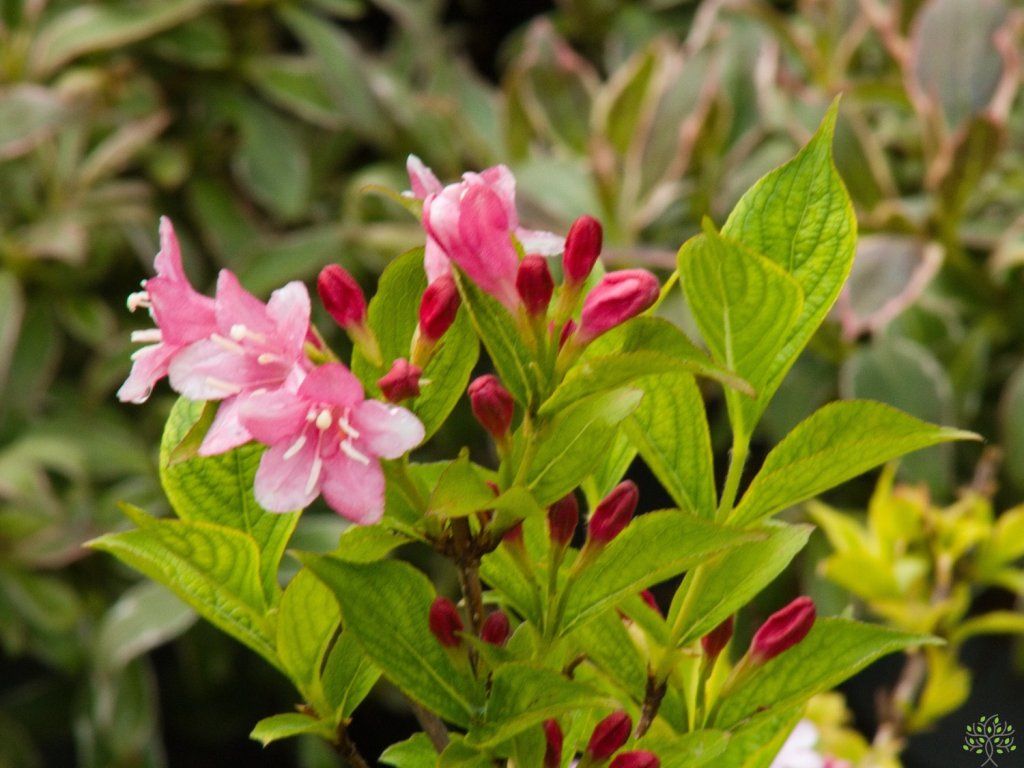 Anbau: Die Weigelie ist ein Strauch, der zu den laubabwerfenden Gehölzen zählt. Sie wächst langsam bis mittelschnell. Die Blüten erscheinen im Frühling und im Spätsommer, sie haben rosarote röhrenförmige Blüten. Der Strauch erreicht eine Höhe von 1 - 1,5 m. Sie wächst als kompakter Strauch. Weigelien gedeihen in nährstoffreichen und mäßig feuchten Böden, in voller Sonne. Die Pflanze ist vollkommen winterhart. Nicht für Kübel im Freien geeignet.