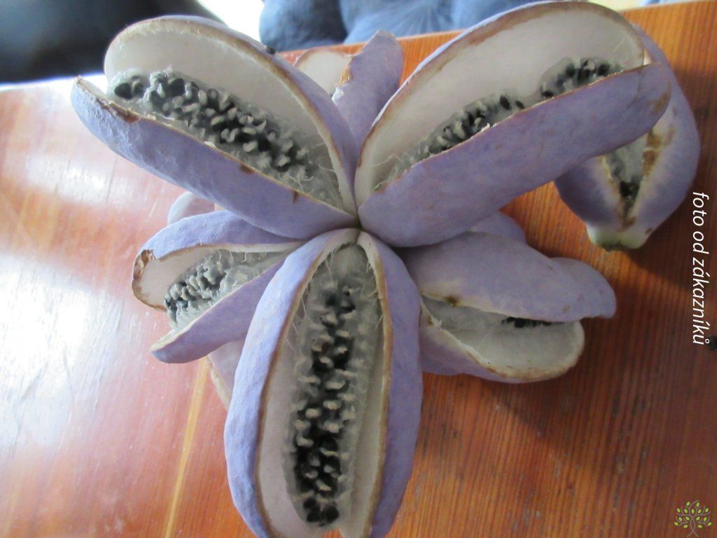 Anbau: Für den Anbau unter unseren Bedingungen ist ein sonniger bis halbschattiger Standort geeignet, geschützt vor dem stärksten Nord- und Ostwind. Die Akebie verträgt auch leichten Schatten, aber an wärmeren Standorten und in voller Sonne blühen und fruchten sie deutlich besser. Der Boden sollte durchlässig, humos bis lehmig, mit guter Drainage und mittlerer Nährstoffversorgung sein. Der optimale pH-Wert liegt ungefähr zwischen 6,0 und 7,5. Die Pflanzen werden am häufigsten von März bis Mai oder von September bis Oktober gepflanzt, bei Containerpflanzen je nach Wetter während der gesamten frostfreien Saison. Bei der Pflanzung ist es ratsam, eine stabile Stütze vorzubereiten: eine Pergola, einen Pfahl, ein Gitter oder ein Drahtsystem, an dem die Triebe schrittweise entlanggeführt werden. In den ersten Jahren nach der Pflanzung ist eine regelmäßige Bewässerung wichtig, insbesondere in trockenen Perioden, später verträgt die Pflanze kurzfristige Trockenheit, wenn der Boden gemulcht ist. Im Frühjahr profitiert die Pflanze von der Zugabe von Kompost oder organischem Dünger für Zier- und Obstgehölze. Der Schnitt besteht darin, die längsten Triebe nach der Blüte oder im frühen Frühjahr auszudünnen und zu kürzen, um das übersichtliche Gerüst der Liane zu erhalten und die Verzweigung zu fördern. Die Frostbeständigkeit liegt ungefähr bei -20 bis -25 °C, an einem geeigneten windgeschützten Ort und mit Mulch über dem Wurzelsystem überwintert sie in den meisten Gebieten gut. Schädlinge wie Blattläuse können gelegentlich auftreten, aber insgesamt handelt es sich um eine widerstandsfähige und anspruchslose Kletterpflanze, die sowohl für Anfänger als auch für erfahrenere Züchter geeignet ist, die eine Kombination aus Duft und Struktur suchen.