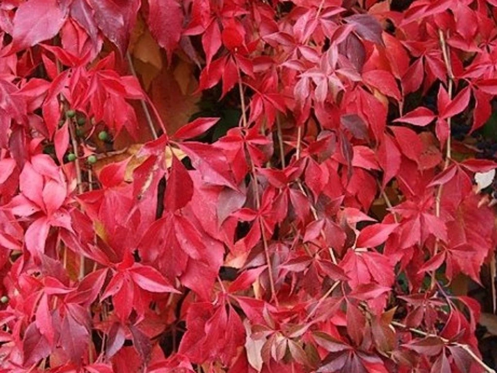 Fünfblättriger Wilder Wein 'Engelmannii' - auch bekannt als Engelmanns Wilder Wein, ist eine beliebte und geschätzte Form des klassischen Fünfblättrigen Wilder Weins. Im Vergleich zur Grundart hat er feinere Blätter, eine dichtere Verzweigung, eine bessere Haftung am Untergrund und ist insgesamt kultivierter, was ihn zu einer idealen Kletterpflanze für Fassaden, Pergolen und Zäune macht. Er wächst als schnell wachsende, üppig kletternde Liane, die 10 bis 15 Meter oder mehr erreichen kann. Die Haftorgane enden in stark haftenden Haftscheiben, mit denen sie perfekt an Wänden, Putz, Holz und Stein haften. Im Vergleich zur üblichen Form des Wilderweins ist er zuverlässiger in der Haftung und löst sich bei Wind oder Schnee weniger ab. Die Blätter sind fünfzählig, aber kleiner, feiner und eleganter als beim Grundtyp. Im Sommer sind sie tiefgrün, im Herbst verfärben sie sich in atemberaubenden Rot-, Weinrot- und Scharlachtönen, was die Pflanze zu einem hochdekorativen Element macht. Die Herbstfarben sind in der Regel intensiver als beim gewöhnlichen Wilderwein. Er ist voll frosthart und übersteht auch strenge Winter problemlos. Er eignet sich zur Bedeckung großer Wände, unansehnlicher Objekte, für Pergolen, Lauben, alte Bäume oder als Bodendecker an Hängen. Seine Wüchsigkeit ermöglicht eine schnelle Begrünung von Flächen, aber es ist mit regelmäßigem Pflegeschnitt zu rechnen, damit er nicht in Dachrinnen oder Fenster hineinwächst.