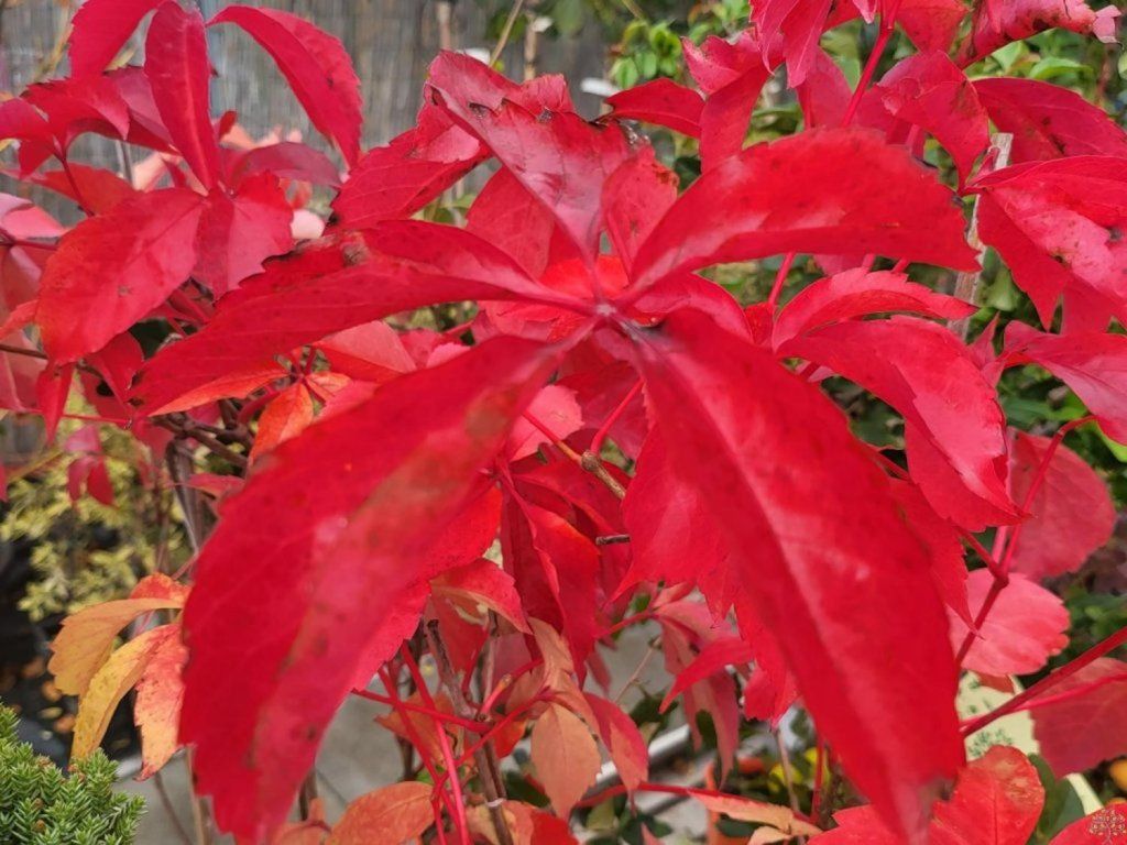 Wilder Wein 'Red Wall' - eine Kletterpflanze, die für ihr schnelles Wachstum und ihre ausgeprägten Herbstfarben bekannt ist. Diese laubabwerfende Lianenpflanze hat fünfteilige, dunkelgrüne Blätter, die sich im Herbst in feurig rote bis scharlachrote Farbtöne verwandeln und dem Garten einen wunderschönen Farbakzent verleihen. Die Pflanze erreicht eine Höhe von 8–12 Metern und kann sich mit Haftscheiben fest an Rankhilfen festhalten, wodurch sie sich ideal zur Begrünung von Wänden, Pergolen, Zäunen oder unansehnlichen Gartenelementen eignet. Die 'Red Wall'-Jungfernrebe ist sehr anspruchslos, widerstandsfähig gegen Frost und verschmutzte Umgebungen und verträgt verschiedene Bodenarten und Standorte, einschließlich Schatten und voller Sonne. Im Sommer blüht sie mit kleinen, unauffälligen Blüten, aus denen sich anschließend blau-schwarze Beeren bilden, die für Vögel attraktiv sind. Insgesamt ist diese Pflanze eine ausgezeichnete Wahl für die Begrünung größerer Flächen und die Schaffung eines ausgeprägten Herbsteffekts.