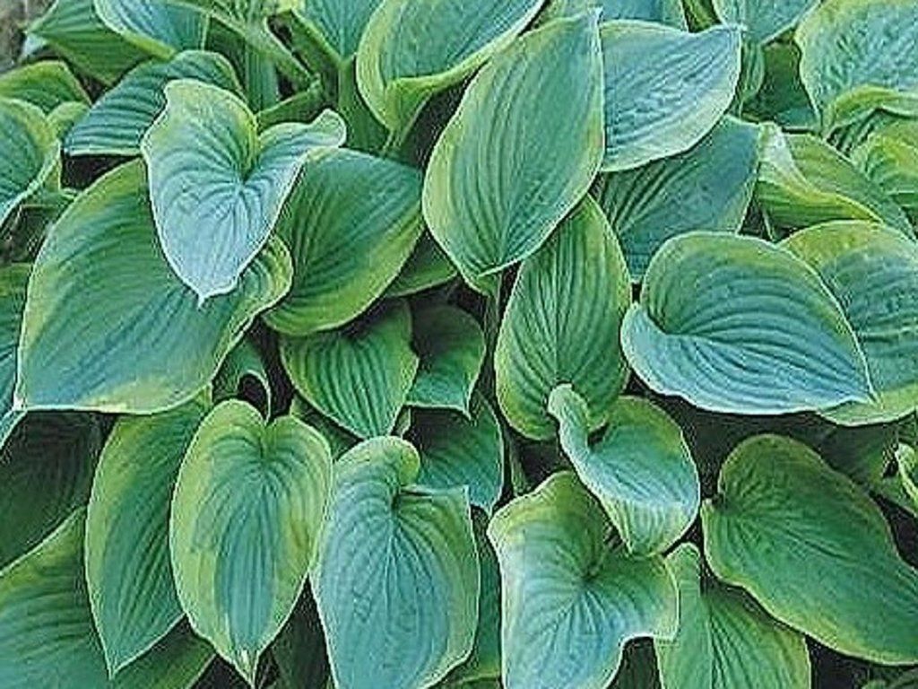 Funkie 'Camouflage' - grün-blau gefärbte Sorte. Die Blätter sind gelb gerändert. Sie wächst bis zu 60 cm hoch. Ein wunderschöner Hingucker, der in Ihrem Garten nicht fehlen darf. Winterhart.