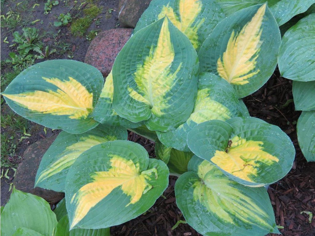 Funkia 'Forbidden Fruit' - die ideale Pflanze für schattige Ecken. Eine aufrechte und horstbildende Staude mit ungewöhnlich gefärbten Blättern. Die Färbung ist gelb-orange mit blaugrünen Rändern. Sie kann eine Höhe von etwa 60 - 65 cm erreichen. Perfekte, röhrenförmige und lavendelfarbene Blüten erscheinen Mitte des Sommers. Hostas eignen sich für die Gruppenbepflanzung. Sie belebt schattige Plätze mit anderen Stauden perfekt. Sie werden sich gut mit Storchschnabel, Bergenien, Prachtspieren, Anemonen und verschiedenen Farnen zur Geltung bringen. Sie finden ihren Platz an den Ufern von Bächen und Teichen. Sie kommt in Behältern und Trögen wunderbar zur Geltung. Die Intensität der Färbung hängt vom Alter der Pflanze ab, d.h. je älter sie ist, desto intensiver ist die Färbung, und vom Standort; direkte Sonne oder vollständiger Schatten verringern die Intensität der Färbung.