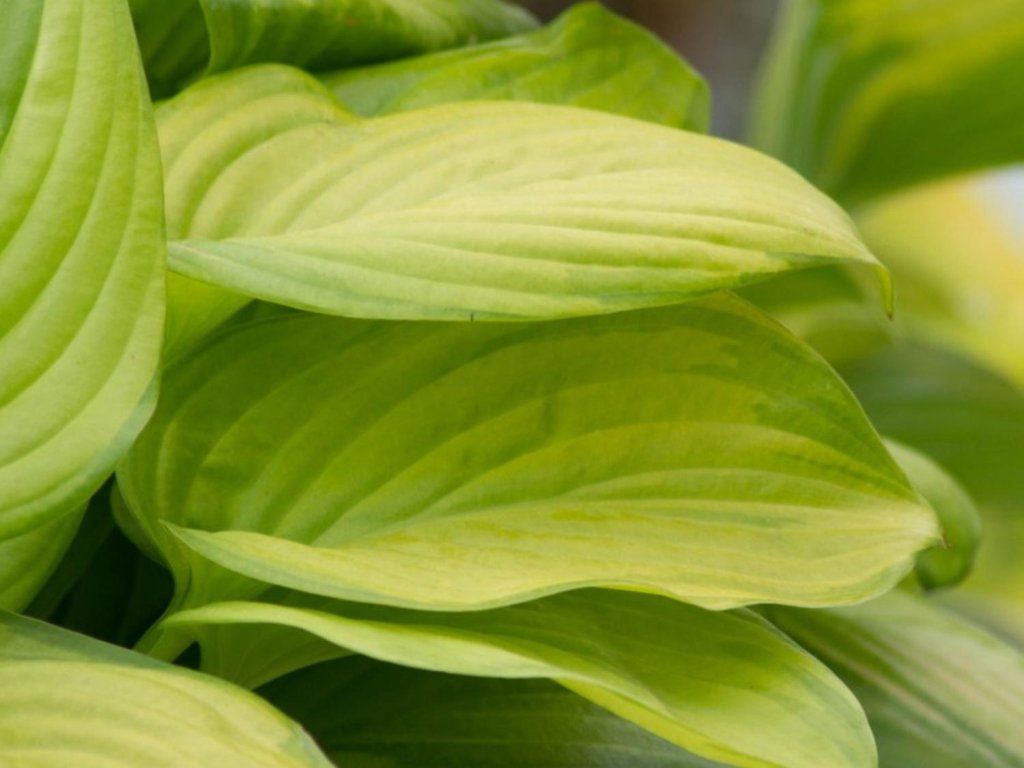 Funkie 'Guacamole' - große Funkie mit panaschierten Blättern. Die Sorte 'Guacamole' wurde von Bob Solberg in den USA gezüchtet und 1994 als grün-gelber Sport der duftenden Funkie 'Fragrant Bouquet' aus dem Umfeld von Hosta plantaginea registriert. Sie verbreitete sich schnell in Europa und Übersee und erhielt 2002 den Titel Hosta of the Year. Sie bildet einen breiten, regelmäßig gewölbten Horst mit großen, glänzenden Blattspreiten, die 25–30 cm lang werden. Die Mitte des Blattes ist chartreuse bis goldgrün, bei ausreichend Licht hellt sie allmählich auf, der Rand bleibt tief dunkelgrün und betont die Blattadern. Im Juli und August, in kühleren Gärten bis in den September hinein, wachsen 70–90 cm hohe Stiele mit fast weißen bis sehr hell lavendelfarbenen Blüten. Der Duft ist deutlich, oft am stärksten am Abend, daher locken die Blüten Bienen und andere Bestäuber an. In der Komposition wirkt sie als „warmer“ heller Akzent zwischen Farnen, Brunnera, Heuchera und dunkelblättrigen Sträuchern, sie kommt auch gut an Wasserelementen oder in Kübeln zur Geltung, wo der Glanz der Blätter aus der Nähe gut sichtbar ist.