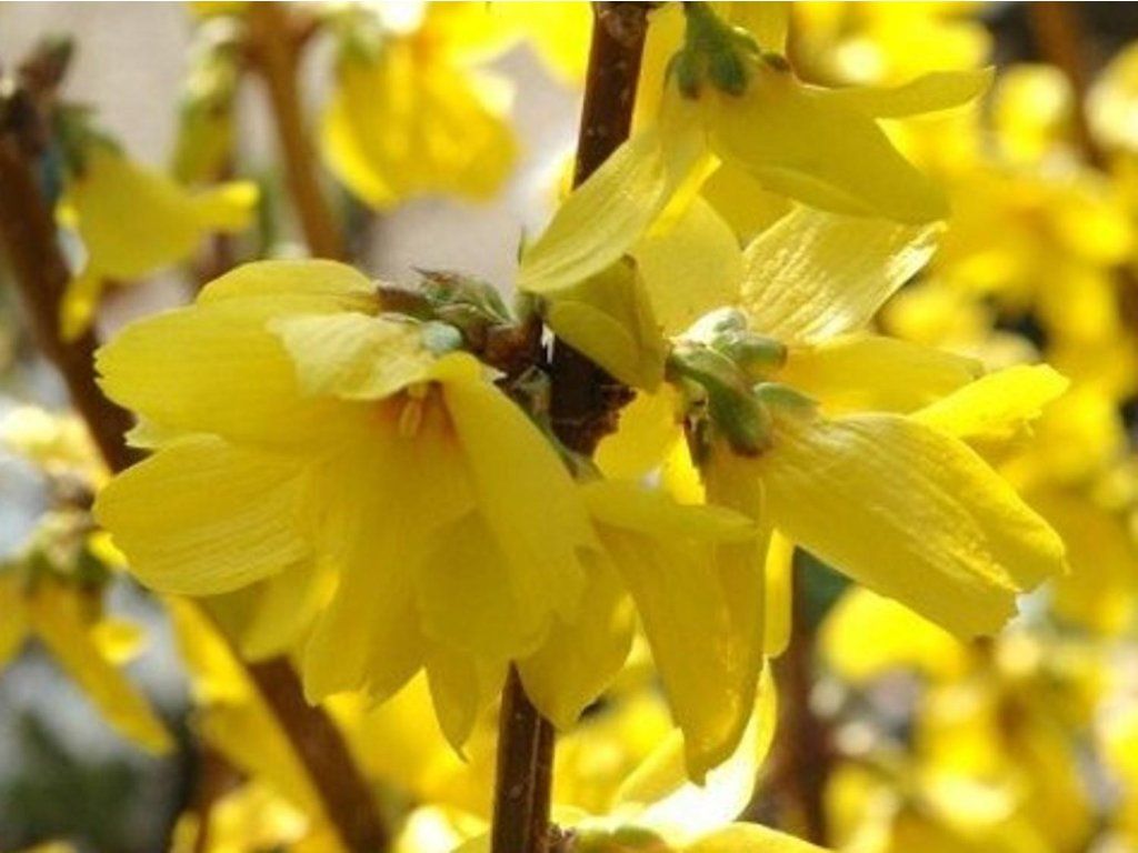 Anbau: Die Forsythie erreicht die üppigste Blüte in voller Sonne, verträgt aber auch leichten Halbschatten. Der Boden kann normaler Gartenboden sein, lehmig bis lehmig-sandig, gut durchlässig, mit Humusgehalt und einem pH-Wert von etwa 6,0-7,5. Er verträgt auch leicht alkalische, kalkhaltige Böden, was den meisten Gärten in Ebenen und Hügeln entspricht. Containerpflanzen werden von März bis November in mit Kompost angereicherte Pflanzlöcher gesetzt, und nach der Pflanzung ist eine regelmäßige Bewässerung wichtig, bis die Pflanze Wurzeln geschlagen hat; generell wird die Pflanzung empfohlen, wenn der Boden nicht gefroren ist. Später verträgt der Strauch kurzzeitige Trockenheit, in längeren Trockenperioden ist jedoch gelegentliches tiefes Gießen vorteilhaft. Im Frühjahr vor dem Austrieb oder kurz nach der Blüte profitiert der Strauch von einer leichten Düngung mit einem Dünger für Ziersträucher. Für die jährliche Blüte ist ein Schnitt nach der Blüte entscheidend: Die ältesten Äste werden bodeneben entfernt und ein Teil der jüngeren Triebe wird um etwa ein Drittel gekürzt, was die Bildung von neuem Blütenholz fördert, auf dem die Pflanze im folgenden Frühjahr blüht. Für eine lockerere Hecke werden die Pflanzen etwa 0,6-0,8 m voneinander entfernt gepflanzt, bei Gruppenpflanzungen rechnet man mit 1-2 Setzlingen pro 1 m², je nach gewünschter Dichte. Unter unseren Bedingungen ist sie bis zu -28 bis -29 °C voll frostbeständig und verträgt nach gärtnerischen Erfahrungen auch das Stadtklima gut. Normalerweise leidet sie nicht unter ernsthaften Krankheiten oder Schädlingen, nur ausnahmsweise treten Blattläuse auf, die mit dichteren, übermäßig gewachsenen Sträuchern verbunden sind. Bei richtig gewählter Standortwahl und grundlegender Pflege handelt es sich um einen langlebigen Strauch, der jedes Jahr einen deutlichen Frühlingseffekt mit minimalem Pflegeaufwand erzielt.