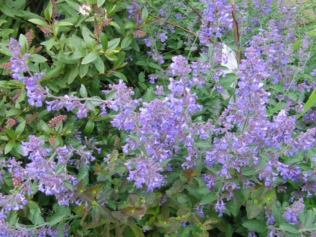 Faassen-Katzenminze 'Mussinii' - ein Garten-Cultivar der Katzenminze, der zur Gruppe der Kreuzungen gehört, die von Arten aus dem Kaukasus und dem nördlichen Iran abstammen. Sie bildet einen niedrigen, breit ausgebreiteten, kissenförmigen Horst, der im ausgewachsenen Zustand etwa 0,3–0,45 m hoch und 0,5–0,8 m breit wird, die Wachstumsgeschwindigkeit ist mittelschnell. Das Laub ist graugrün, fein behaart, mit gesägtem Rand und nach Berührung dank der für Lippenblütler typischen ätherischen Öle stark aromatisch. Der Duft ist für den Menschen kräuterartig, für manche Katzen anziehend, daher eignet er sich auch für Orte, an denen mit gelegentlichem „Herumliegen“ im Kontakt mit Tieren zu rechnen ist. Von Juni bis September wachsen über den Blättern Ähren kleiner, zweilippiger Blüten in Lavendelblau- bis Violetttönen. Einzelne Blühwellen folgen aufeinander, besonders wenn nach der ersten Welle verblühte Stiele entfernt werden. Die Pflanze ist ausgesprochen bienenfreundlich und zieht auch Hummeln und Schmetterlinge an. Dank ihrer weichen Textur und langen Blütezeit fügt sie sich gut in natürliche und formellere Pflanzungen ein, wo sie als „Bindeglied“ zwischen auffälligeren Stauden fungiert. Sie eignet sich als Beetbegrenzung, für Schotter- und trockenheitsliebende Kompositionen, zu Rosen, Salbei und Perowskien oder als Füllung zwischen Ziergräsern. Die Blütenstände können auch für informelle Sträuße verwendet werden, wo sie mit zarter blau-violetter Farbe und kräuterartigem Ton ergänzen.