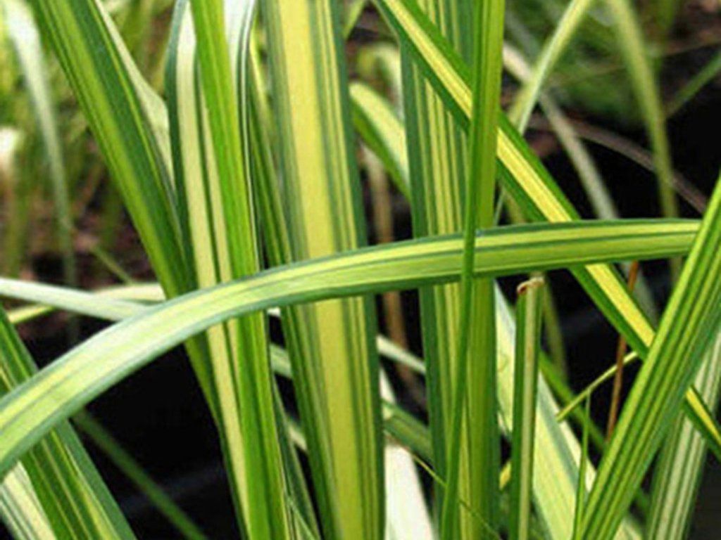 Gras-Rohrkolben 'Eldorado' - ein relativ schnell wachsender, horstbildender Dauerblüher, der dem stets gefragten Kultivar Karl Foerster sehr ähnlich ist. Im Gegensatz zu seinen verwandten Arten ist er nicht sehr invasiv. Attraktive, schmale Blätter haben eine frische grüne Farbe und sind mit einem gelben Streifen gesäumt. Die Pflanze erreicht in Blüte eine Höhe von über 150 cm. Die Blütenstände sind beige-gelb, mit einem leichten violetten Schimmer. Sie erscheinen im Laufe des Sommers und halten bis zum Frühherbst an.