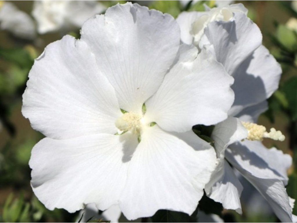 Syrischer Eibisch 'Eléonore' - ein laubabwerfender Strauch aus der Familie der Malvengewächse, der auf die ursprüngliche Art aus wärmeren Regionen Ostasiens zurückgeht. Es handelt sich um eine französische Selektion, bei der der Züchter A. angegeben ist. Rochoux, und die Sorte ist in Europa durch Sortenschutzrechte geschützt. Im Garten zeichnet er sich vor allem durch seine reinweiße, einfache Blüte ohne burgunderrotes Auge aus, was bei syrischen Eibischen eher selten ist. Die Blüten erscheinen von Juli bis September, sind etwa 6–10 cm groß und wechseln sich am Strauch laufend ab. Der Habitus ist aufrecht bis leicht ausgebreitet und erreicht nach 10 Jahren üblicherweise eine Höhe von etwa 3 m und eine Breite von 2 m. Die Blätter sind dreilappig, grün, verfärben sich im Herbst gelb, ein Duft ist in der Regel nicht vorhanden. Der hell blühende Strauch lässt sich gut mit dunkelblättrigen Berberitzen, Spieren, Viburnum und Gräsern kombinieren und wirkt im Vorgarten als heller Punkt des Spätsommers. Die Blüten werden von Bienen und Schmetterlingen besucht. Zur Blütezeit erscheinen an den Enden der diesjährigen Triebe auch Samenkapseln, die jedoch bei weißen Kultivaren selten das Hauptmerkmal darstellen. Der Strauch treibt recht spät aus, oft erst im Mai, und setzt dann schnell neue Blätter an. Dadurch kommt er gut neben frühjahrsblühenden Sträuchern zur Geltung, da er in der zweiten Sommerhälfte das Zepter übernimmt. In solitärer Pflanzung wirkt er rein, ohne farbigen Mittelpunkt, und stört keine umliegenden Stauden.
