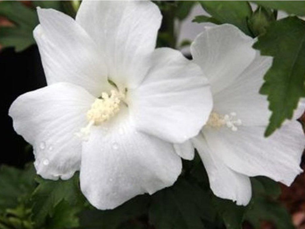 Syrischer Eibisch 'Totus Albus' - bildet einen mittelgroßen, kompakt wachsenden Strauch, der im Erwachsenenalter eine Höhe von 1,5-3 m erreicht. Von Juli bis September blüht er mit großen, reinweißen Blüten mit einem Durchmesser von 7-9 cm. In der Mitte können sich verkümmerte, gewellte Blütenblätter bilden. Er ist voll frostbeständig bis -29 °C.