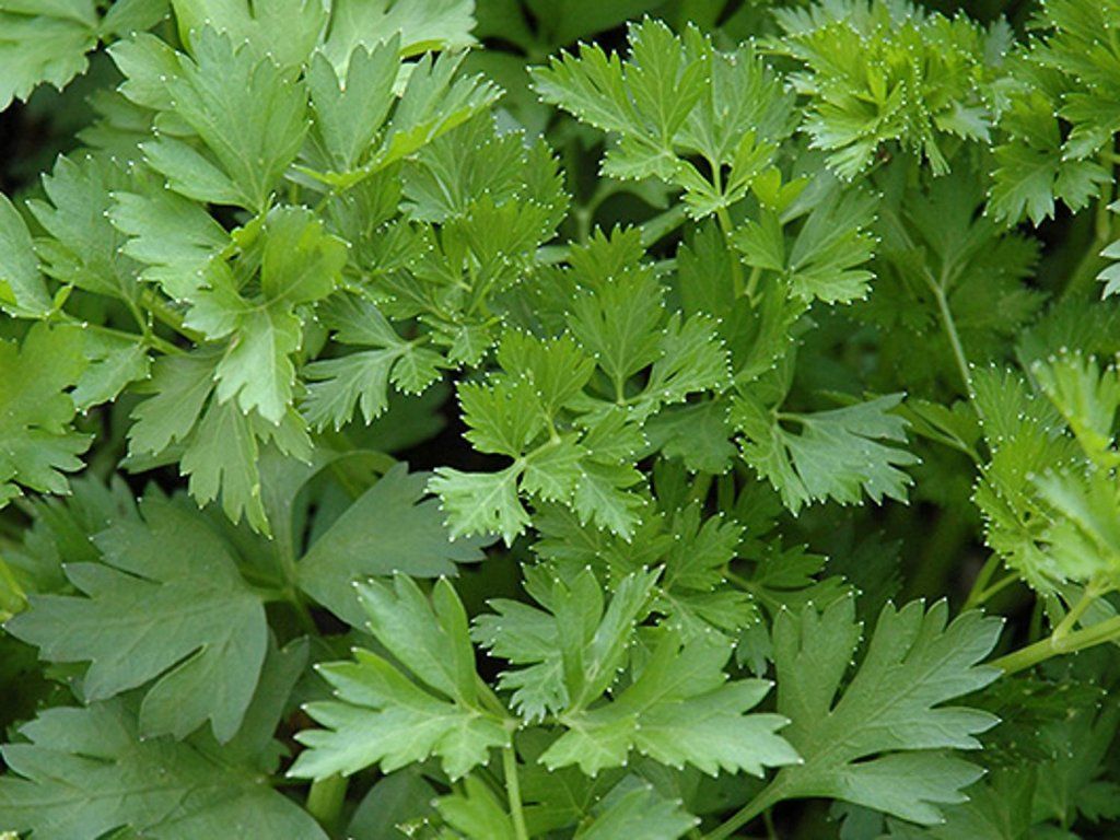 Anbau: Bevorzugt einen sonnigen bis halbschattigen Standort mit gleichmäßiger Feuchtigkeit und durchlässigem, humosem Boden, pH-Wert ca. 6–7,5. Die Aussaat erfolgt von März bis August, die Keimung ist oft langsamer, häufig 3–4 Wochen, daher wird eine konstant feuchte Oberfläche gehalten. Die Pflanzen werden nach dem Auflaufen im Abstand von 25–30 cm vereinzelt, was etwa 9–12 Pflanzen pro m² entspricht. Regelmäßiges Beschneiden der Blätter fördert die Verdichtung, während im zweiten Jahr nach der Blüte die Blätter schnell steifer und ausgeprägter werden. Düngung mit Kompost oder eine leichte Stickstoffgabe im Frühjahr verbessert die Qualität des Krauts, in Behältern helfen häufigeres Gießen und eine Drainageschicht. Im Beet ist Petersilie bis ca. -20 °C frostbeständig, im Topf ist es ratsam, den Wurzelballen vor dem Durchfrieren zu schützen. Von Krankheiten können Blattflecken, bei zu dichter Pflanzung auch Mehltau auftreten, von Schädlingen Blattläuse und die Petersilienfliege, Vorbeugung ist ein luftiger Pflanzabstand und Standortwechsel. Die Ernte des Krauts erfolgt laufend, am häufigsten von April bis Oktober, bei überwinterten Pflanzen auch schon im zeitigen Frühjahr. Für die Küche werden hauptsächlich junge Blätter verwendet, die kurzes Kochen vertragen, am intensivsten sind sie jedoch frisch oder erst zum Schluss hinzugefügt. Ein größeres Gefäß mit einem Volumen von mindestens 5–7 l hält die Feuchtigkeit stabiler und ermöglicht die Bildung eines kompakten Büschels von 30–45 cm. Bei Hitze helfen Mulch und Bewässerung an den Wurzeln, damit das Kraut nicht grob wird und nicht vorzeitig in Blüte geht. Eine abwechselnde Pflanzung und das Nicht-Anbauen nach anderem Doldenblütler-Gemüse ist ratsam, um den Krankheitsdruck zu verringern.