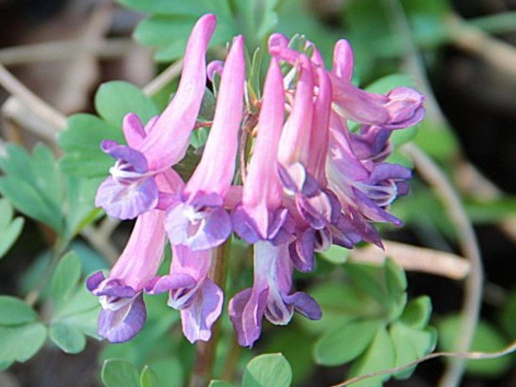 Corydalis solida - Corydalis ist eine niedrige Staude, die eine lange Blütezeit und hellgrüne, handförmig gelappte Blätter hat. Sie sät sich stark aus und muss in Schach gehalten werden. Die traubenförmigen, violetten Blütenstände erscheinen von Mai bis Juli. Er wird bis zu 15 cm hoch. Sie überwintert in ihren unterirdischen Knollen. Sie ist eine giftige Frühlingspflanze.