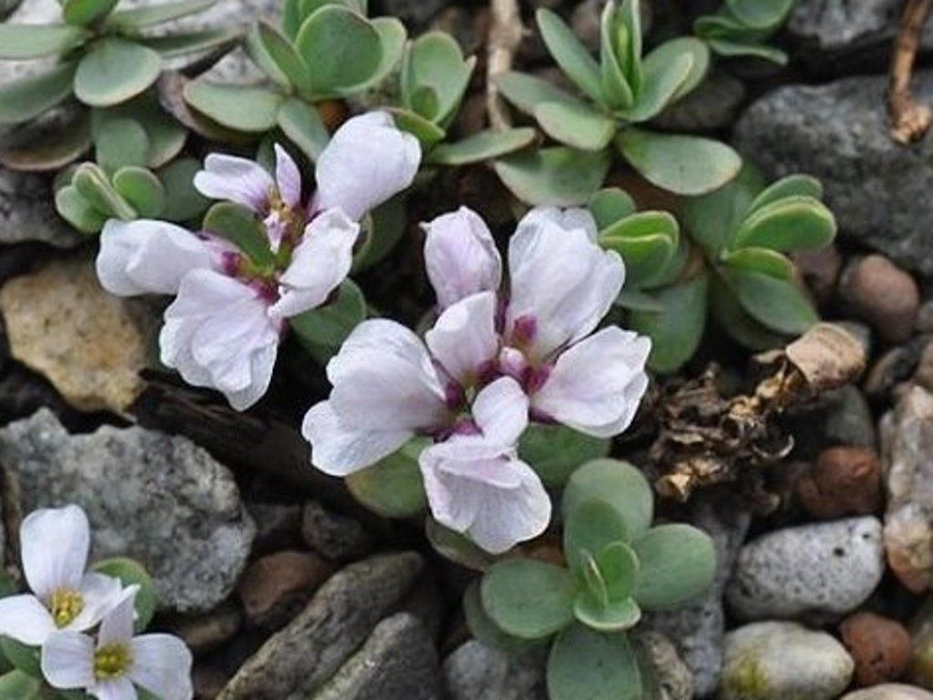 Silberwurz - eine niedrige, kriechende und kompakte Steingartenpflanze, die dichte polsterartige Horste bildet, die eine Höhe von etwa 10 cm und eine Breite von etwa 20 cm erreichen. Ihre kleinen, fleischigen Blätter sind anfangs graugrün und später eher grün und bleiben oft auch im Winter erhalten, was der Pflanze außerhalb der Blütezeit einen dekorativen Effekt verleiht. Im frühen Frühjahr, typischerweise von März bis Mai, entwickeln sich über den Blättern kleine, vierzähnige Blüten in zarten Schattierungen von blassrosa bis lila mit einem kontrastierenden gelben Zentrum. Diese Blüten sind in kleinen Büscheln gesammelt und erzeugen in der frühen Jahreszeit einen Effekt von Farbexplosionen. Die Sorte stammt aus den Kalkhängen der Türkei, des Kaukasus und des Libanon, wo sie sich an trockene Böden und volle Sonne angepasst hat. Sie ist vollständig frostbeständig bis ca. –20 °C und verträgt heiße Sommersonne sowie windige Standorte. Unter unseren Bedingungen ist sie ideal für sonnige Steingärten, trockene Hänge oder als niedrige Randpflanze an Beeträndern und in Gefäßen. Die empfohlene Pflanzdichte beträgt ca. 6–9 Pflanzen pro m² zur Schaffung eines kompakten Blütenrasens.