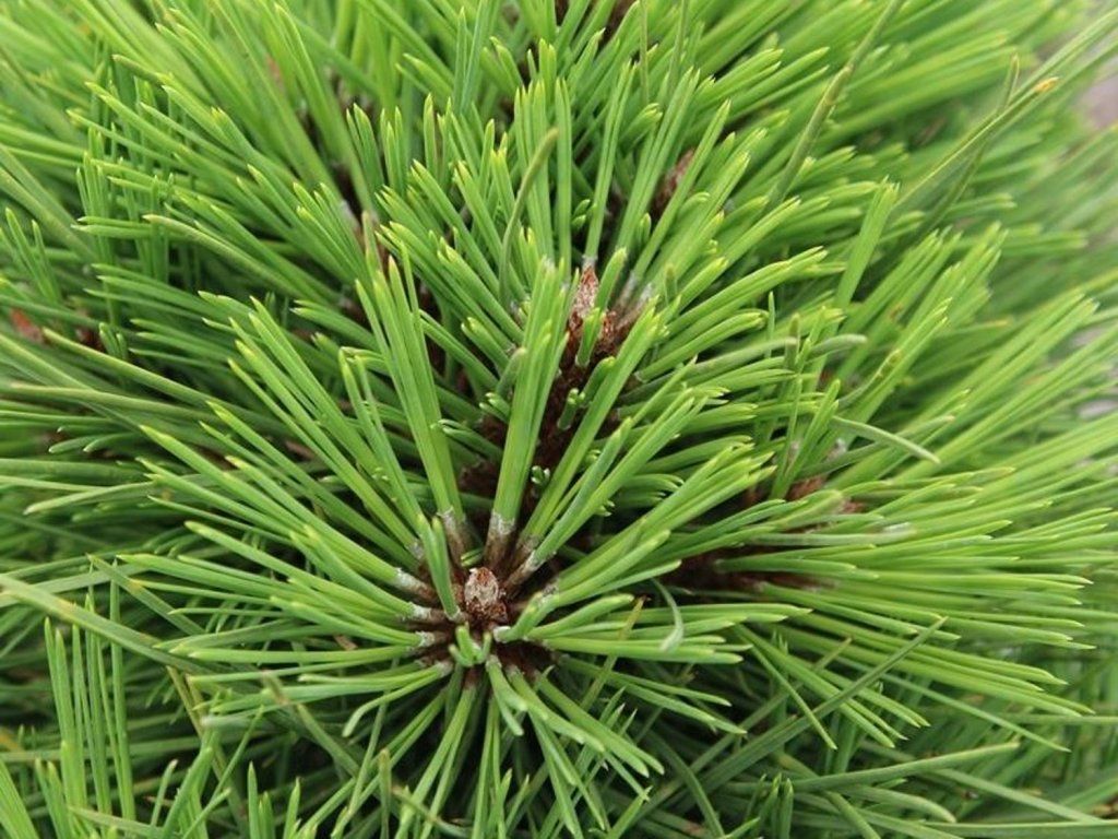 Pinus ponderosa 'Dixie' - stammt aus West-Nordamerika, wo sie auf sonnigen Hängen und in lichten Bergwäldern auf kiesigen, gut durchlässigen Böden wächst. Die Zwergform 'Dixie' behält den Charakter der Art im Miniaturformat bei und bildet einen unregelmäßig kissenförmigen, dichten, buschigen Habitus mit einem langsamen Wachstum von etwa 5 cm pro Jahr. Die Nadeln trägt sie zu fünft in Büscheln, sind fein und flexibel, normalerweise 7–10 cm lang, blaugrün mit silbrigem Schimmer und duften harzig bei Berührung. Der Zierwert ergibt sich hauptsächlich aus der Textur des Laubes und der ganzjährigen Farbe, die sich in Kiesbeeten, zwischen Heidekrautgewächsen und als Solitärrasen auszeichnet. In der Komposition bewährt sie sich mit niedrigen Wacholderarten, Heidekraut und Glockenheide, Ziergräsern oder mit Steinmulch, der die Zeichnung der Nadeln hervorhebt. Im ausgewachsenen Zustand erreicht sie in Gärten normalerweise eine Höhe von etwa 1,5–2 m und eine Breite von 2–2,5 m, je nach Boden und Klima, sodass sie auch in kleinere Räume ohne regelmäßigen Formschnitt passt. Wie bei der Art können im Laufe der Zeit kleinere eiförmige Zapfen erscheinen, die lange an den Zweigen verbleiben und der Pflanze weitere Struktur verleihen.