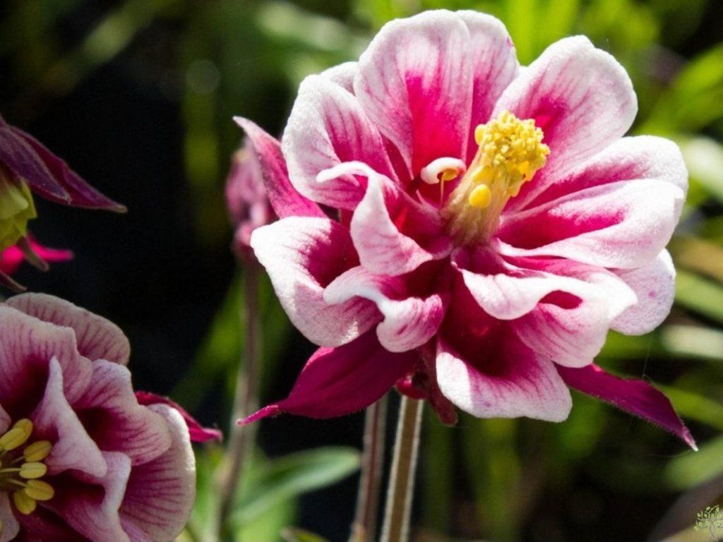 Gemeine Akelei 'Winky Red and White Double' - Aquilegia vulgaris 'Winky Red and White Double' Aquilegia vulgaris 'Winky Rot und Weiß Doppelt'