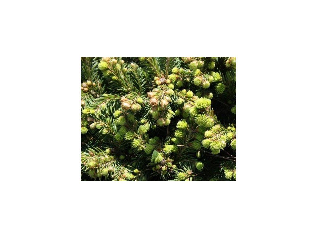 Gemeine Fichte 'Hexebesen' - langsam wachsende Sorte mit starker, kugelförmiger Form. Die Nadeln sind blaugrün. Wächst bis zu einer Höhe von 40 cm bei einer Breite von 40 cm. Bevorzugt sonnige Standorte, mäßig fruchtbare, feuchte Böden. Hervorragende Sorte für kleine Gärten, Steingärten, Heidegärten.