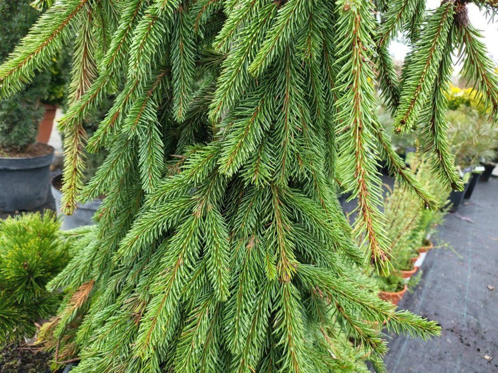 Pflege: Bevorzugt einen vollsonnigen Standort, der die intensive Färbung der Frühlingszuwächse und ein kompaktes Kronenwachstum fördert. Der Boden sollte fruchtbar, mittelschwer bis lehmig-sandig, gut durchlässig und dauerhaft leicht feucht sein, jedoch nicht dauerhaft vernässt. Am besten geeignet sind Böden mit saurer bis leicht saurer Reaktion, etwa im Bereich von pH 5–6,5, weshalb dem Pflanzloch oft Torf oder Nadelstreu beigemischt wird. Um den Wurzelballen herum ist Rindenmulch empfehlenswert, der Temperaturschwankungen und Austrocknung des Bodens reduziert und gleichzeitig das flache Wurzelsystem schützt. Containerpflanzen werden von März bis Oktober gepflanzt. In warmen und trockenen Perioden ist eine regelmäßige Bewässerung vorteilhaft, insbesondere in den ersten zwei bis drei Jahren nach der Pflanzung. Nach dem Einwurzeln verträgt die Fichte vorübergehende Trockenheit, jedoch führen langanhaltende Trockenperioden zu einem Austrocknen der Triebspitzen, besonders in städtischer Umgebung. Die Frostbeständigkeit des Kultivars liegt bei etwa –26 °C. In normalen Wintern in Ebenen und Mittelgebirgen bereitet der Winterschutz keine Probleme, junge Pflanzen in Behältern überwintern jedoch besser geschützt oder nach dem Einlassen des Behälters in den Boden. Die Düngung ist sparsam. Im Frühjahr genügt eine einmalige Gabe von Dünger für Zierkoniferen, die ein gleichmäßiges Wachstum ohne übermäßige Verlängerung der Triebe fördert. Der Schnitt beschränkt sich auf das Entfernen trockener, erfrorener oder beschädigter Äste; eine grundlegende Formgebung ist nicht notwendig. Bei ungünstigen Bedingungen können Pilzkrankheiten des Nadelwerks auftreten, und Schädlinge wie Spinnmilben oder Blattläuse können vorkommen. Ein luftiger Standort, gleichmäßige Feuchtigkeit und eine nicht übermäßige Stickstoffdüngung reduzieren ihr Auftreten erheblich. Bei Gruppenpflanzungen wird ein Abstand von mindestens 2,5–3 m zwischen den einzelnen Pflanzen oder größeren Gehölzen empfohlen, damit die Sorte genügend Platz hat, ihre volle Form und Farbe zu entfalten.