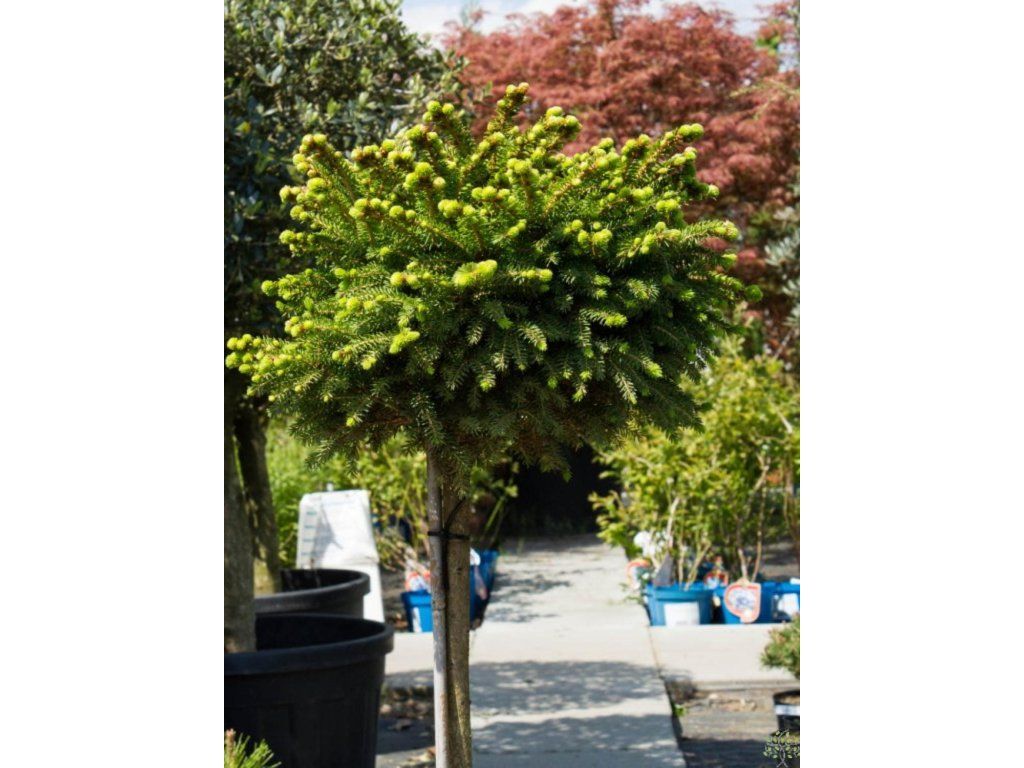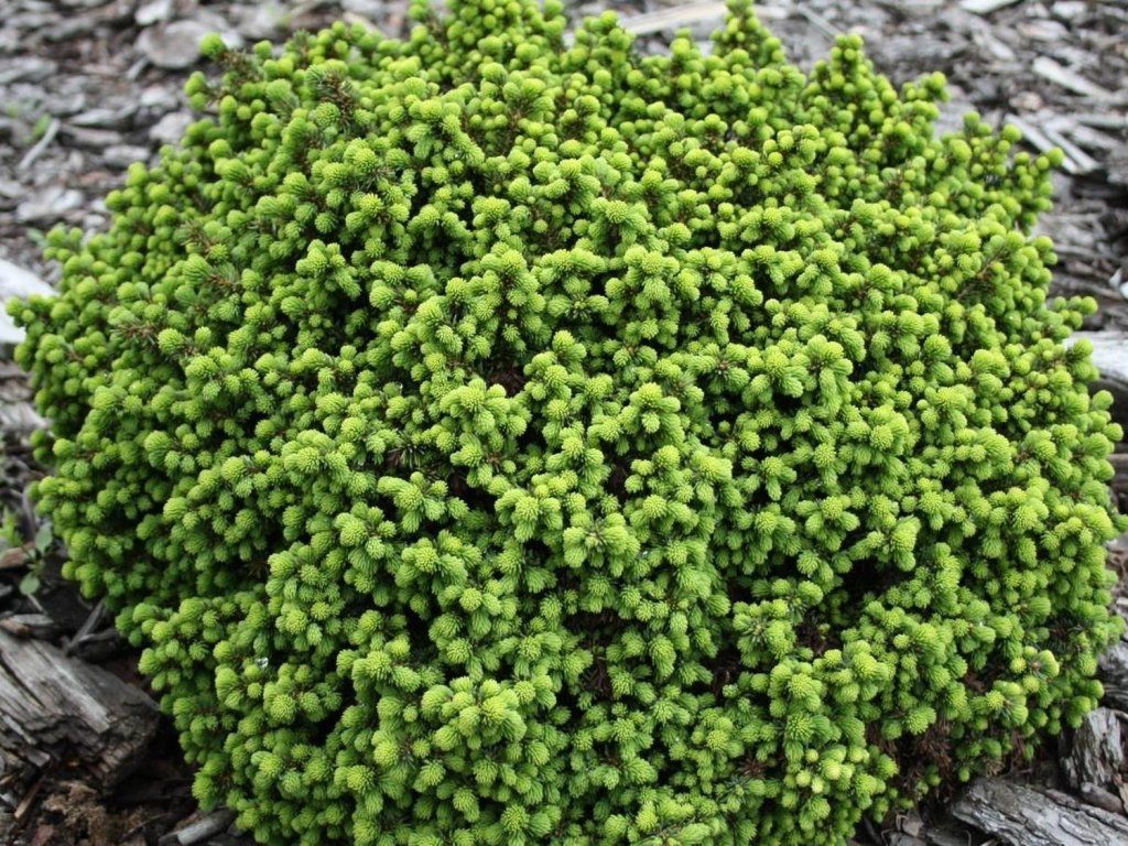 Gemeine Fichte 'Little Gem' - langsam wachsender Zwergfichtenbaum, der unveredelt eine Höhe von 30-60 cm und eine Breite von 40-80 cm erreicht. Die Nadeln sind dunkelgrün, kürzer, neue Triebe haben eine erbsengrüne Farbe. Wächst zu einer halbkugelförmigen Form und wirkt sehr dicht. Pflanzung in gut durchlässige Böden. Passt perfekt in Steingärten, wo er eine kissenförmige Pflanze mit frischer grüner Farbe bildet.