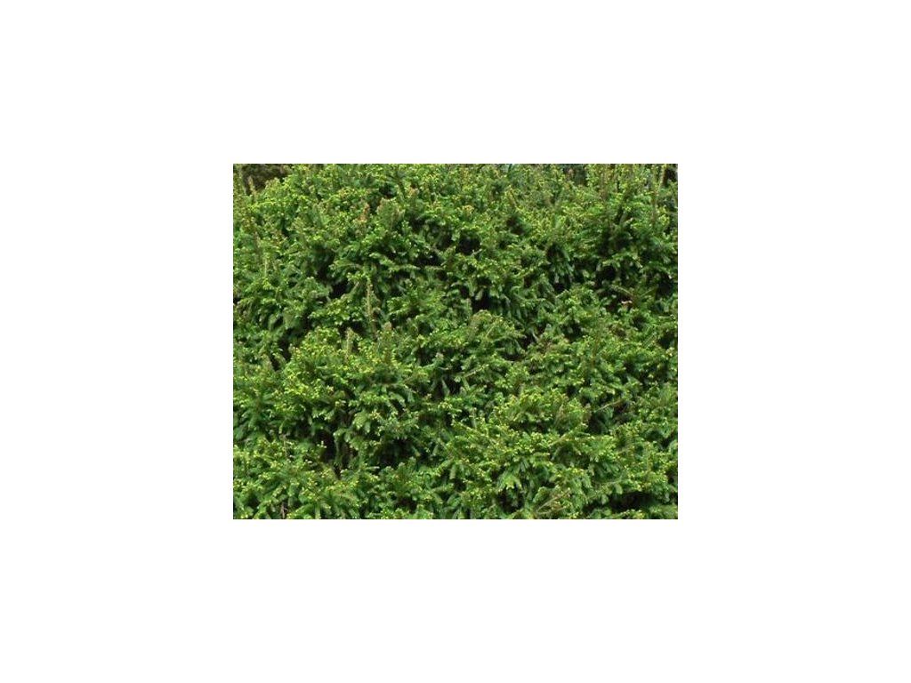Gemeine Fichte 'Pygmaea' - Zwergkultivar mit sehr langsamem Wachstum, erreicht eine Höhe von 35 cm und eine Breite von 45 cm. Behält seine dichte, kugelförmige Form, erinnert später an einen abgerundeten Kegel. Wir pflanzen in leicht saure, feuchtere Böden in die Sonne.