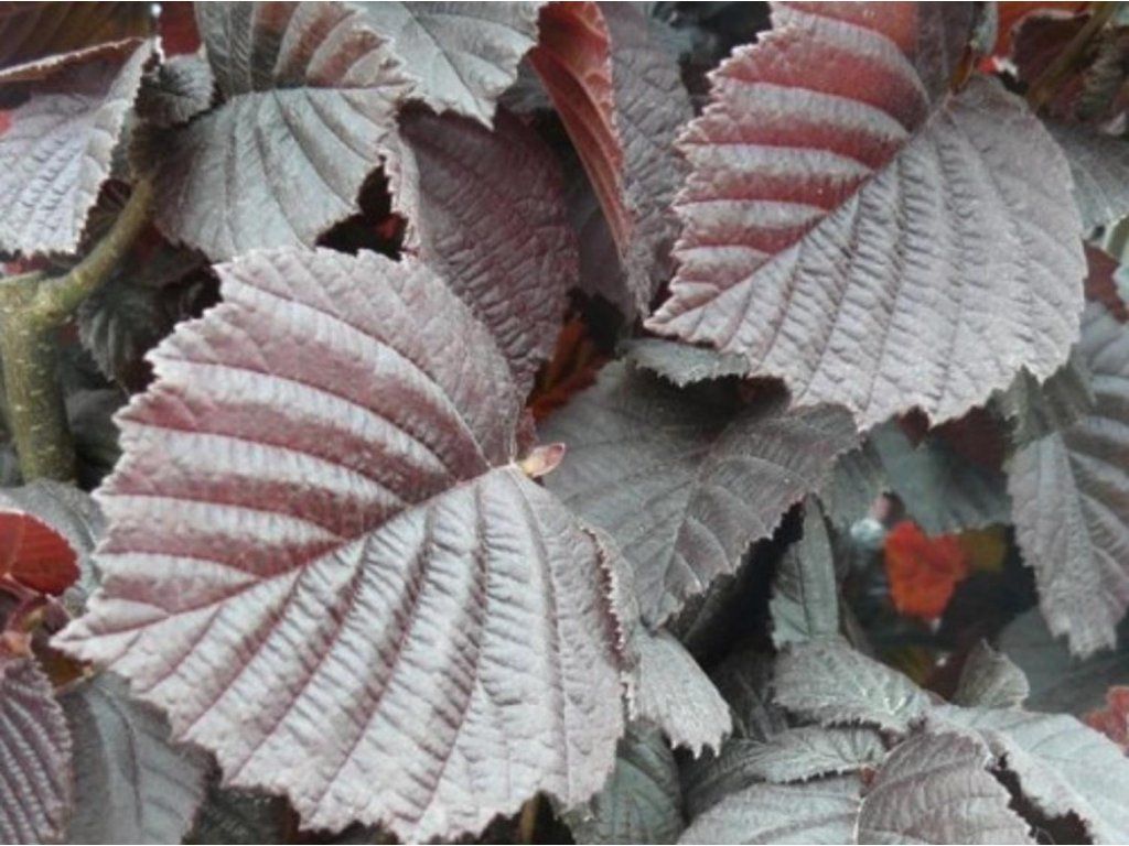 Haselnuss 'Anny´s Red Dwarf' - eine Zwergform der Gemeinen Hasel, erreicht eine Höhe von ca. 2,5 - 3 m und bildet dichten Bewuchs. Wächst langsamer, ist für kleinere Gärten geeignet. Die Sorte hat gerade Äste, die Blätter sind dunkelrot-schwarz gefärbt. Die sehr interessante Färbung wird kontrastreich schön mit einer helleren Pflanze oder vor einem helleren Hintergrund aussehen.