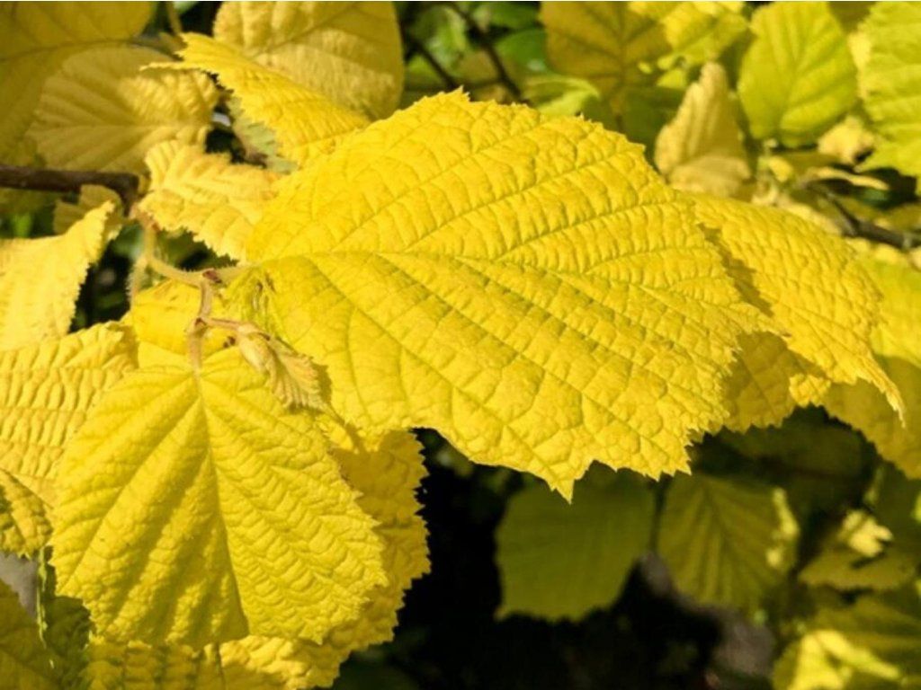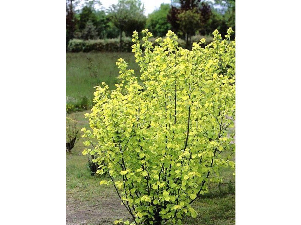 Haselnuss 'Aurea' - hoher, schnell wachsender Strauch, ausnahmsweise kleiner Baum. Es handelt sich um eine Sorte, die der Grundart sehr ähnlich ist. Er erreicht eine Höhe von 4 m, je nach Kulturbedingungen, mit jährlichen Zuwächsen von etwa 15-20 cm. Der Hauptunterschied ist die Blattfarbe. Herzförmige Blätter sind im Frühjahr leuchtend gelbgrün gefärbt. Im Herbst ist die Farbe noch intensiver und geht bis zu einem buttergelben Farbton über. Sie trägt mäßig Früchte. Aufgrund des goldenen Laubes ist ihre Platzierung in praller Sonne nicht ratsam.