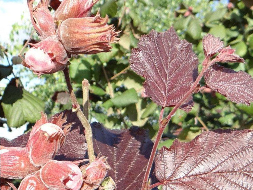 Haselnuss 'Syrena' - schnell wachsender, buschiger Baum, der eine Höhe von 3-5 m erreicht. Tbildet eine kugelförmige, dichte Krone. Sie wird nicht nur für ihre reiche Ernte geschätzt, sondern auch für ihre dekorativen dunkelroten Blätter, die im Spätsommer einen grünlichen Schimmer annehmen. Die Früchte sind groß und regelmäßig geformt, leicht länglich. Der Kern ist geschmacklich sehr gut und füllt die Schale gut aus. Die Sorte ist sehr ertragreich. Wir ernten die Früchte Ende September und Anfang Oktober. Sie ist gut krankheitsresistent. Wir empfehlen den Anbau an einem sonnigen Standort.
