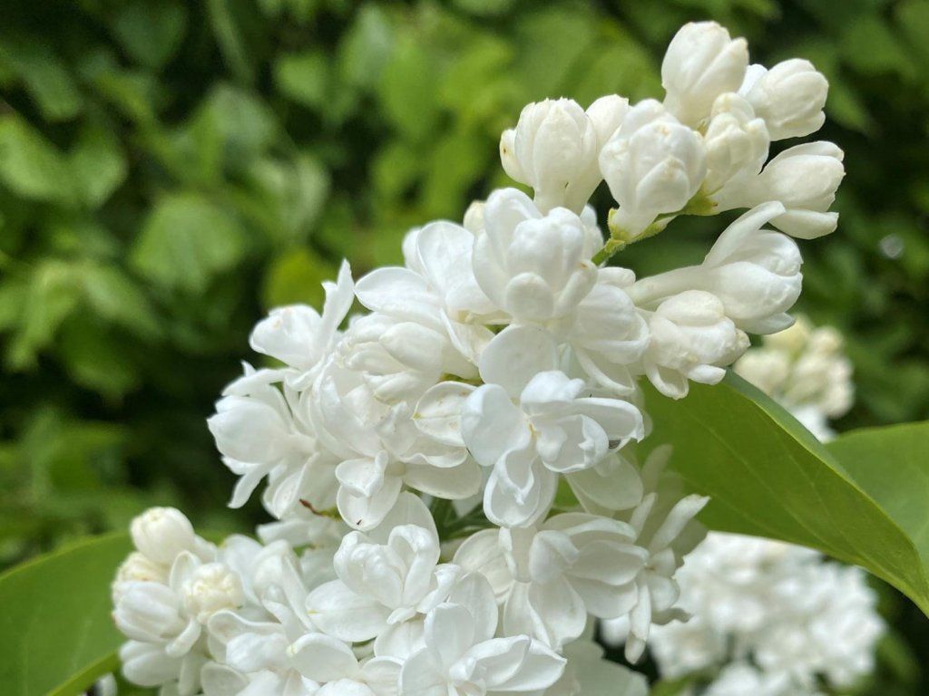 Flieder 'Miss Ellen Willmott' - eine zarte Flieder-Sorte, der als laubabwerfender Zierstrauch mit attraktiven Blüten und angenehmem Duft angebaut wird. Er erreicht im ausgewachsenen Zustand eine Höhe von etwa 3 bis 4 Metern und eine ähnliche Breite, manchmal bis zu 5 m unter günstigen Bedingungen. Die Blätter sind einfach, herzförmig, mittel- bis dunkelgrün und bilden während der meisten Vegetationsperiode einen dezenten und beruhigenden grünen Hintergrund. Er produziert im Mai normalerweise eine große Menge an Blüten in auffälligen Rispen. Die Blüten sind doppelt gefüllt, rein bis cremeweiß und haben einen starken, süßen Duft, der zu den Hauptvorteilen dieser Sorte gehört. Dank seiner gefüllten Blüten und seines ausgeprägten Duftes wird der Flieder oft als Solitärgehölz im Garten oder als Zierstrauch in Vorgärten oder am Haus verwendet, wo die Blüten gut zur Geltung kommen. Er eignet sich auch für den Schnitt und die Verwendung in Innenraumgestecken.