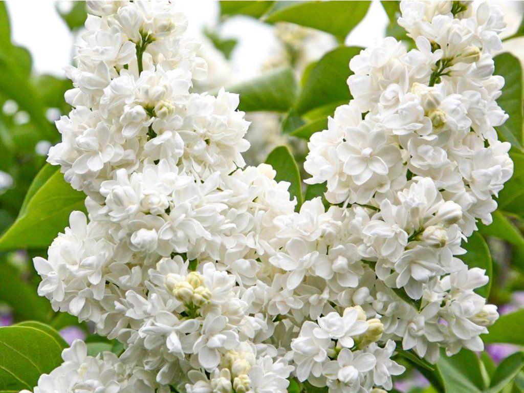 Syringa vulgaris 'Monique Lemoine' - ein hochgeschätzter Zierstrauch-Kultivar, der zu den schönsten weiß blühenden, gefülltblütigen Sorten zählt. Er wurde in Frankreich von der berühmten Züchterfamilie Lemoine gezüchtet und ist beliebt für seine großen, perfekt gefüllten Blüten, seinen starken Duft und sein sehr elegantes Erscheinungsbild. Er wächst als mittelstark bis stark wachsender, aufrechter Strauch, der normalerweise 3 bis 4 Meter hoch und ähnlich breit wird. Er bildet ein festes, gut verzweigtes Gerüst und wirkt mit zunehmendem Alter sehr repräsentativ. Die Blätter sind groß, herzförmig, dunkelgrün, gesund und während der gesamten Vegetationsperiode dekorativ. Die Blüten erscheinen im Mai und gehören zu den ausgeprägt gefüllten. Sie sind in großen, dichten Rispen angeordnet und haben eine reine weiße Farbe, oft mit einem leichten cremefarbenen Hauch in der Knospe. Nach dem Aufblühen sind die Blüten schneeweiß, sehr üppig und wirken außerordentlich luxuriös. Die Blüten haben einen starken, süßen und typisch fliederartigen Duft. Er ist voll frosthart, verträgt städtische Umgebungen gut und ist in der Regel nicht anfällig für Krankheiten. Er eignet sich als Solitär, in Gruppenpflanzungen, in repräsentativen Gärten, Parks und auf größeren Grundstücken. Dank der Fülle und Reinheit der Blüten ist er auch sehr beliebt für den Schnitt in Vasen und festliche Arrangements.