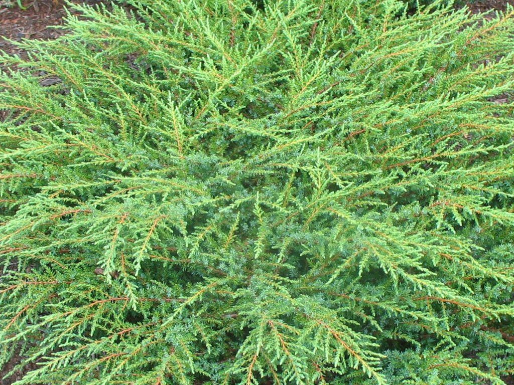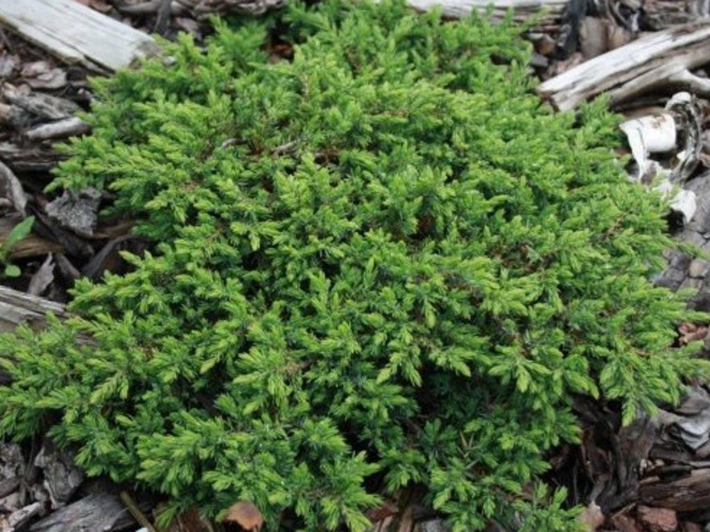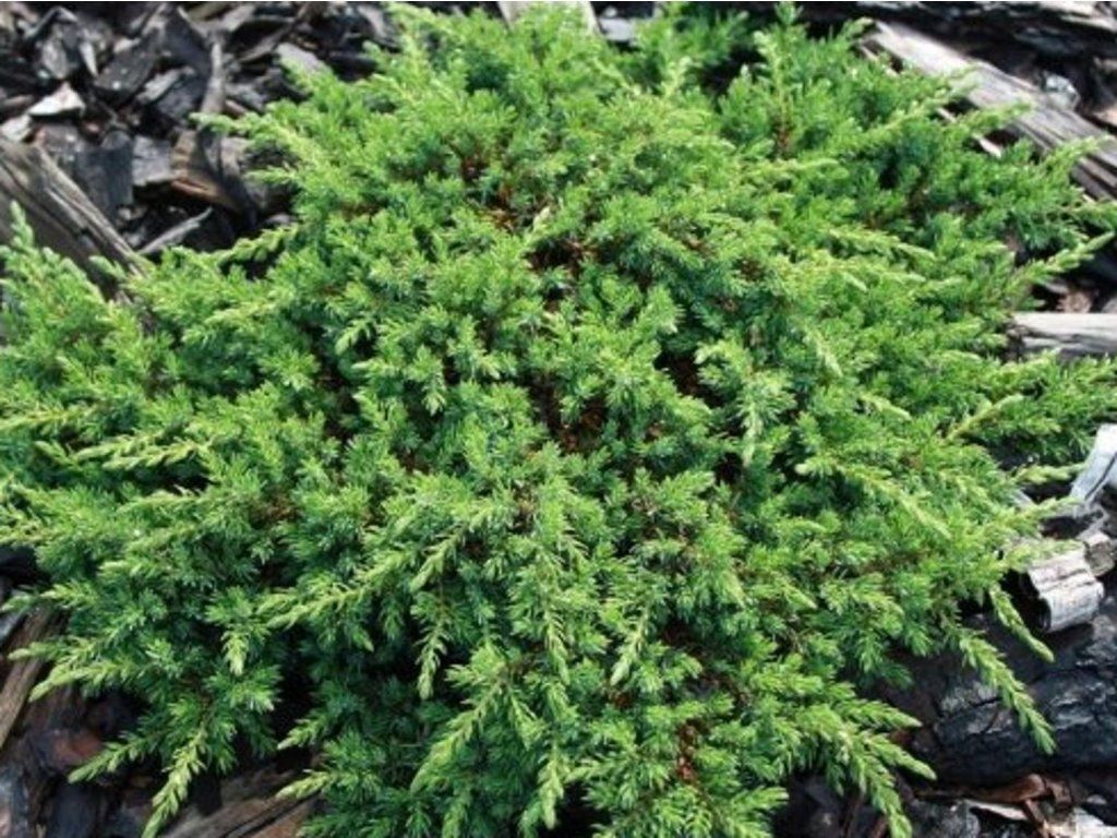 Gemeiner Wacholder 'Green Carpet' - 'Green Carpet' basiert auf unserer ursprünglichen europäischen Art, die natürlich an trockenen Hängen, Heideflächen und Rändern lichter Kiefernwälder vorkommt. Diese Standorte haben seine außergewöhnliche Widerstandsfähigkeit gegen Kälte, Wind und arme, steinige Böden geprägt. Er bildet einen sehr niedrigen, flach wachsenden Strauch mit Ästen, die dicht am Boden anliegen. Sein Habitus erinnert an einen durchgehenden grünen Teppich mit einer Höhe von 0,1-0,2 m und einer Breite von 1-1,5 m, im Alter auch mehr. Er wächst langsam, bildet aber eine dichte Struktur, die effektiv Unkraut unterdrückt und Hänge stabilisiert. Die Nadeln sind kurz, nadelartig, stechend, tiefgrün bis dunkelgrün, an jungen Trieben heller. Beim Zerreiben verströmen sie einen angenehmen aromatischen Duft, typisch für Wacholder. Wacholder ist zweihäusig, die Frühlingsblüten sind unscheinbar, an weiblichen Pflanzen können sich kleine kugelförmige Zapfen mit bläulichem Reif bilden, es handelt sich jedoch um eine ausschließlich als Zierpflanze genutzte Sorte. Dank seines flachen Wuchses eignet er sich für ausgedehnte Steingärten, Trockenhänge, Heideflächen, Schotterbeete oder als grüner Teppich unter höheren Nadelbäumen. In der Komposition bildet er eine ruhige Kulisse für Gehölze mit sattem oder panaschiertem Laub und harmoniert gut mit Stauden mit grauen oder weinroten Blättern.