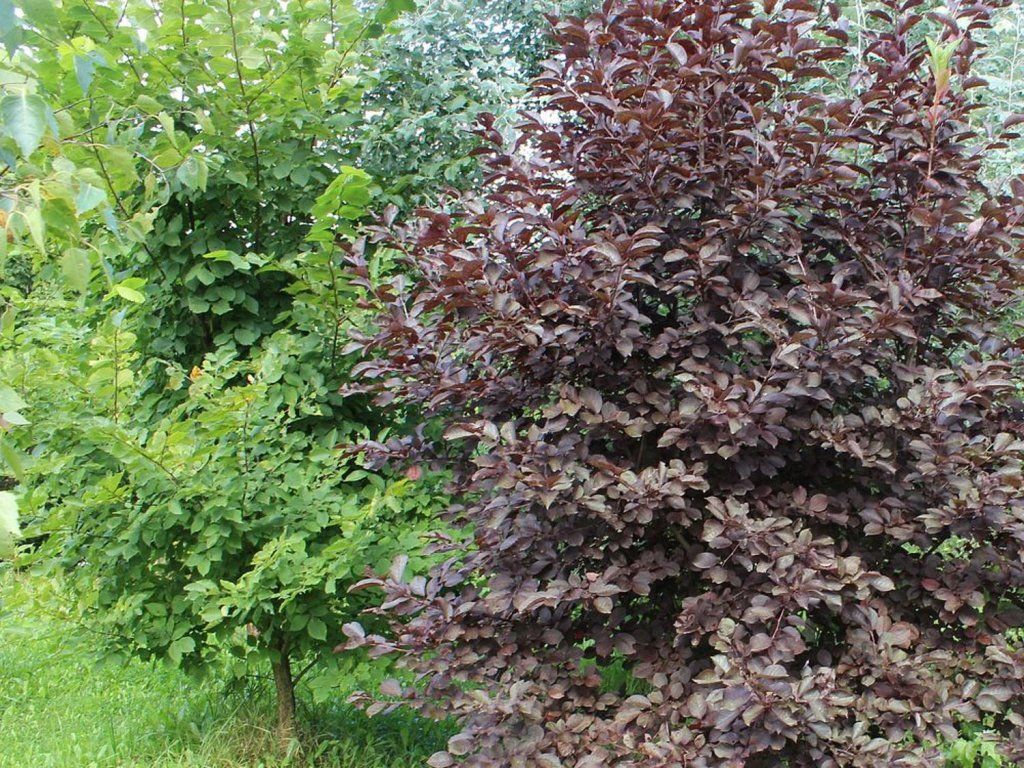 Spierstrauch 'Novosibirskaja' - ein laubabwerfender Baum, der je nach Wachstumsbedingungen eine Höhe von bis zu 15 m erreicht. Der Baum bildet eine dichte Krone, das Gesamtwachstum ist sehr schnell. Seine Blätter sind weinrot, länglich-eiförmig mit gesägten Rändern. Im Mai ist der Baum mit kleinen weißen Blüten übersät, die in traubenförmigen Blütenständen angeordnet sind. They smell very pleasant. Nach den Blüten folgen kleine Früchte, die sich rot-schwarz färben - Kirschen.