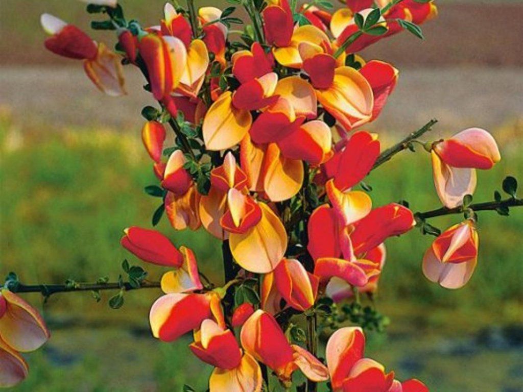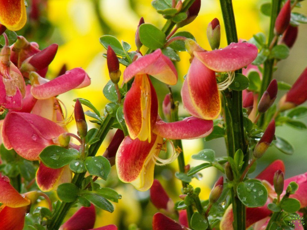 Geißklee 'Palette' - eine auffällige, mehrfarbige Geißklee-Sorte, die für ihre dekorativen, ausgeprägten Blüten geschätzt wird. Im ausgewachsenen Zustand erreicht sie normalerweise eine Höhe von etwa 1,0 bis 1,5 Metern und eine ähnliche Breite. Wächst aufrecht bis leicht ausgebreitet mit feinen Zweigen und kleinen Blättern, die im Frühjahr erscheinen, nachdem der Strauch geblüht hat. Die Blüten sind schmetterlingsförmig, etwa 2 cm groß und erscheinen normalerweise von Mai bis Juni. Die Blütenfarbe ist variabel und kombiniert Schattierungen von Karminrot, Purpur oder Rot mit warmen Gelbtönen, was der Pflanze ein sehr farbenprächtiges, auffälliges Aussehen verleiht. Nach der Blüte bildet der Strauch kleine Hülsen, die für Ginster typisch sind. Verträgt Temperaturen von mindestens –20 bis –27 °C. Der Strauch eignet sich als Solitärpflanze oder als dekorativer Akzent im Garten, macht sich gut in Steingartenbereichen, auf trockenen, sandigen Beeten, an Hängen oder in gemischten Pflanzungen mit anderen trockenheitsliebenden Pflanzen. Ein wirklich schöner Kultivar, der auf den ersten Blick besticht.