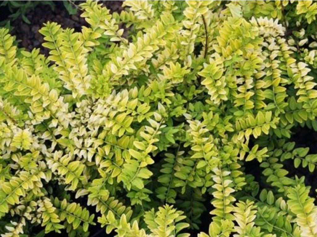 Lonicera nitida 'Golden Glow' – ein immergrüner oder halbimmergrüner Strauch, der in der Reife eine Höhe von etwa 1,2-2 m und eine Breite von 1,2-2,5 m erreicht. Kleine Blätter haben eine goldgelbe Farbe und wachsen über die gesamte Länge der Pflanze. Er verträgt Rückschnitte gut und ist sehr anspruchslos. Er eignet sich hervorragend für Hänge, Steingärten, Beete oder als Zierpflanze in Gefäßen. Dank seiner Anspruchslosigkeit gehört er zu den am häufigsten gepflanzten Ziersträuchern. Sie sollte in keinem Garten fehlen.