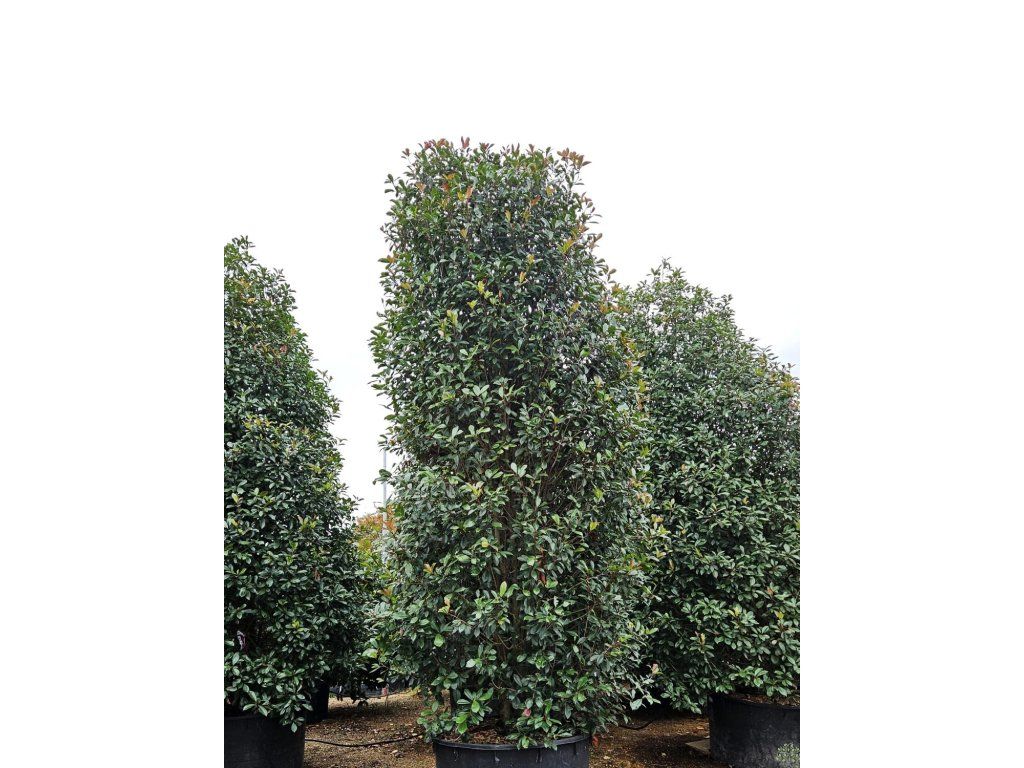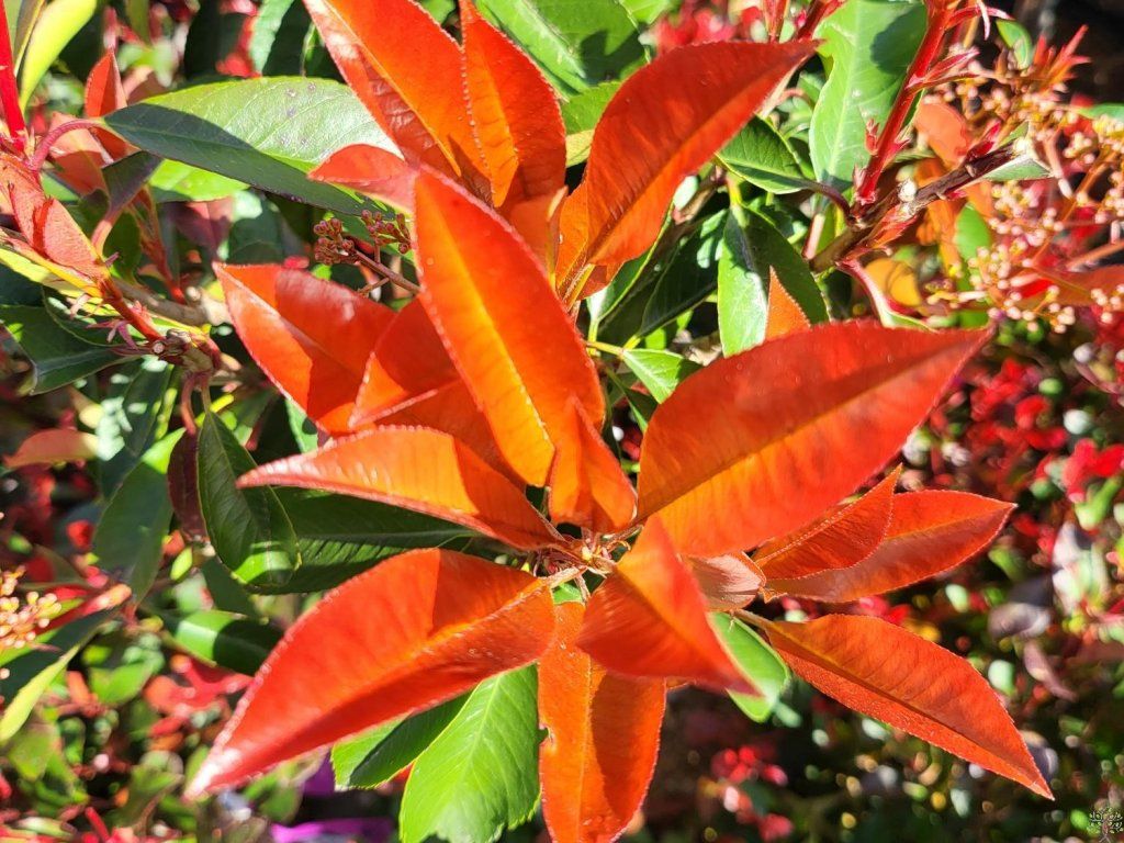 Glanzmispel 'Red Robin' - dieser höhere, immergrüne Strauch ist eine echte Bereicherung für jeden Garten. Sein Wachstum ist anfangs recht dynamisch, doch nach Erreichen einer Höhe von etwa 150 cm verlangsamt sich die Wuchsgeschwindigkeit leicht, der Strauch verdichtet sich natürlich und bildet ein dichtes und undurchdringliches Grün. Es handelt sich um eine Kreuzung zwischen den Arten Photinia glabra und Photinia serratifolia. Sie wurde als Zierstrauch für Hecken und Parkanlagen gezüchtet, insbesondere in Westeuropa. Der Kultivar 'Red Robin' gehört zu den am häufigsten verwendeten Kultivaren und bildet in den Gärten Mitteleuropas einen dichten Strauch oder kleinen Baum, der normalerweise 2–3 m hoch und 1,5–2,5 m breit wird, unter idealen Bedingungen auch mehr. Die Blätter sind elliptisch, ledrig, etwa 10–15 cm lang, im Frühjahr leuchtend rot bis bronzefarben und später dunkelgrün, glänzend. Von Mai bis Juni erscheinen an älteren Pflanzen flache Schirmrispen mit kleinen weißen Blüten, die von Insekten besucht werden. Später reifen kleine, runde rote Beeren, die bis in den Winter hinein verbleiben und als Vogelfutter dienen. Die Früchte sind nicht zum Verzehr bestimmt. Der Strauch ist dornenlos und eignet sich gut für moderne Pflanzungen zusammen mit Nadelgehölzen, Kirschlorbeer, Schneebällen und Ziergräsern.