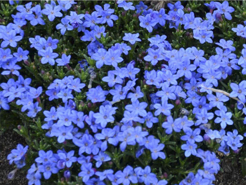 Lithodora diffusa 'Grace Ward' - Lithodora diffusa 'Grace Ward' ist eine bewährte Sorte eines niedrigen, immergrünen Halbstrauchs, der aus Südwesteuropa stammt, insbesondere aus den Bergregionen Nordspaniens und Portugals, wo er auf sauren, steinigen Standorten wächst. Die Sorte wurde wegen ihres kompakten Wuchses und ihrer außergewöhnlich ausgeprägten Blütenfarbe ausgewählt. Im ausgewachsenen Zustand erreicht sie eine Höhe von etwa 10–15 cm und eine Breite von 40–60 cm, wobei sie dichte, kissenförmige Bestände mit leicht überhängendem Charakter bildet. Die Blätter sind schmal, lanzettlich, dunkelgrün und leicht behaart, was die Wasserverdunstung reduziert und zur Trockenheitsbeständigkeit beiträgt. Die Hauptzierwirkung liegt in den Blüten, die im Mai und Juni erscheinen, oft in mehreren Wellen. Sie sind klein, etwa 1 cm groß, aber sehr zahlreich, mit einer intensiv blauen bis saphirblauen Farbe und einem kontrastierenden Zentrum. Die Pflanze bildet so kontinuierliche blaue Teppiche, die besonders in Kombination mit Steinelementen hervorstechen. In der Gartengestaltung findet sie Anwendung in Steingärten, Trockenmauern, Schotterbeeten und Kübeln, wo sie beispielsweise Steinkraut, Steinbrech, niedrige Thymiane oder Fetthennen ergänzt. Dank ihres immergrünen Charakters behält sie auch außerhalb der Blütezeit ihre dekorative Wirkung.