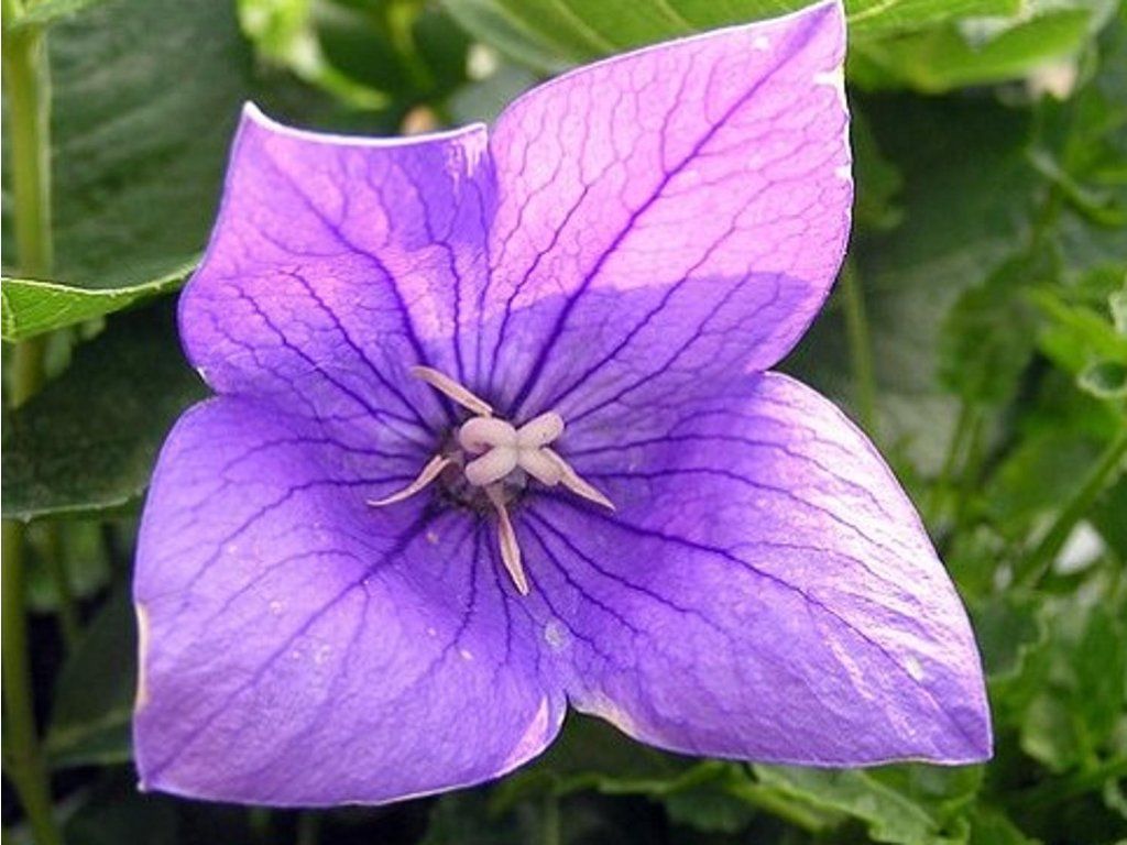 Großblütige Ballonblume 'Astra F1 Blue' - stammt aus Ostasien, wo sie auf Wiesen und an Gebüschrändern wächst. Die Sorte 'Astra F1 Blue' gehört zur Zuchtreihe Astra F1, die von Sakata auf den Markt gebracht wurde, und ist auf kompaktes Wachstum in Kübeln sowie in vorderen Beetbereichen ausgerichtet. Die Pflanze bildet einen Horst mit aufrechten, stabilen Stielen, die normalerweise 20–25 cm hoch und etwa 20 cm breit werden. Die Blätter sind schmal bis eiförmig, mittelgrün, auffällig ist das späte Austreiben im Frühling. Von Juni bis August erscheinen aufgeblähte Knospen und danach große, etwa 8 cm breite, sternförmig geöffnete Blüten in violett bis blauviolett. In der Komposition lässt sie sich gut mit niedrigen Ziergräsern, Fetthennen und Lavendel kombinieren, in Kübeln mit leicht überhängenden Arten, die die Blütenform unterstreichen. Die Blüten sind geruchlos, aber gut sichtbar für Bestäuber, insbesondere Bienen und Hummeln, und halten sich in der Vase einige Tage.