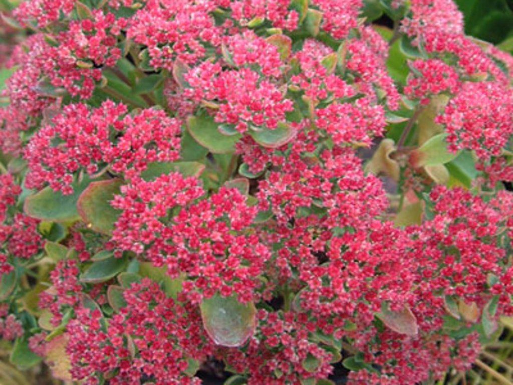 Fetthenne 'Munstead Dark Red' - eine bewährte und sehr beliebte Sorte des stattlichen Sedums, die eine Höhe und Breite von 45-60 cm erreicht. Die Blätter sind grün, neigen aber im Sommer dazu, rot zu werden, und sind typischerweise fleischig. Ende des Sommers werden sie durch rosarote Blüten ergänzt, die in Büscheln wachsen. Er kommt hervorragend in Kombination mit anderen höheren Stauden zur Geltung, die zur gleichen Zeit blühen.