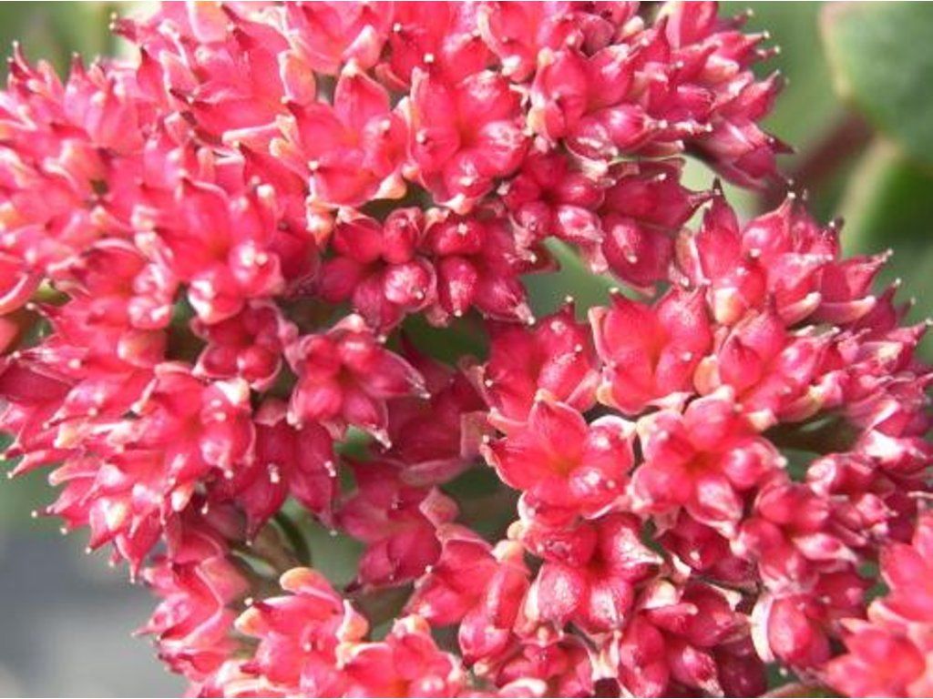 Fetthenne 'Red Cauli' - eine niederländische Sorte, die eine Höhe von 20 - 30 cm und eine Breite von 30 - 60 cm erreicht. Graugrüne Blätter sind typischerweise fleischig und werden durch kirschrote Blütenstände ergänzt. Blüht von August bis Oktober. Im Juni können wir sie ein wenig zurückschneiden. Die Pflanze ist für den Schnitt geeignet. Er kommt hervorragend in Kombination mit anderen höheren Stauden zur Geltung, die zur gleichen Zeit blühen. Er ist eine willkommene Nahrungsquelle für Hummeln, Bienen und Schmetterlinge.