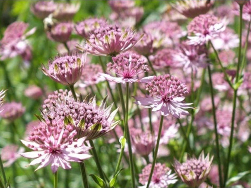 Große Sterndolde 'Roma' - eine bezaubernde Staude, die in der Reife standardmäßig eine Höhe von etwa 40 - 60 cm erreicht. Die Blütenstände erscheinen von Mai bis Juli in einfachen Dolden in Altrosa. Die Blätter bilden eine grundständige Rosette und sind gezahnt. Die Pflanze kann als Solitärpflanze oder als Teil eines Staudenbeets oder in Töpfen mit anderen Stauden angebaut werden. Sieht in Kombination mit helleren Stauden großartig aus. Wird für Blumenarrangements verwendet. Sie ist pflegeleicht und voll frosthart. Sie sollte in keinem Garten fehlen.