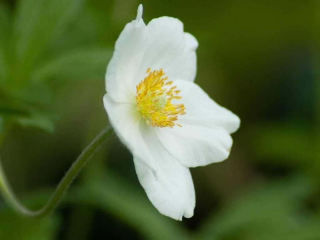 Wald-Anemone - eine elegante und auffällige Zierstaude, ursprünglich aus Europa und Westasien, wo sie an lichten Waldrändern, auf Wiesen und trockenen Hängen wächst. Im Gegensatz zur Buschwindröschen ist sie robuster, auffälliger und in Gärten sehr geschätzt für ihre großen weißen Blüten, ihren ausgeprägten Duft und ihre zuverlässige Frühlingsblüte. Sie wächst als mittelgroße ausdauernde krautige Pflanze, normalerweise 30 bis 50 cm hoch. Sie bildet feste, aufrechte Stängel und breitet sich allmählich durch kurze unterirdische Rhizome aus, wodurch sie lockerere Horste bildet. Der Habitus ist aufrecht, übersichtlich und sehr elegant. Die Blätter sind tief geteilt, graugrün bis grün, fein behaart und auch nach der Blüte dekorativ. Die Blüten erscheinen von April bis Mai, manchmal mit einer Wiederholung schwächerer Blüte im Sommer. Sie sind groß, einfach, schalenförmig bis weit geöffnet, mit einem Durchmesser von etwa 5–7 cm. Die Blütenfarbe ist reinweiß, oft mit einer zart cremefarbenen oder goldenen Mitte, die aus auffälligen gelben Staubgefäßen besteht. Die Blüten sind zart duftend, was bei Anemonen eher ungewöhnlich ist. Sie ist anspruchslos, sehr widerstandsfähig und voll frosthart. Sie findet Anwendung in Staudenbeeten, in Steppen- und Naturpflanzungen, an Hängen, in Trockengärten, an den Rändern von Gehölzgruppen und als zarte Solitärpflanze. Sie lässt sich sehr gut mit Ziergräsern, Frühlingszwiebelblumen und anderen trockenheitsliebenden Stauden kombinieren.