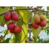 Kornelkirsche 'Schönbrunner Gourmet-Dirndl' - eine prestigeträchtige österreichische Sorte, die in Schönbrunn bei Wien wegen ihrer hervorragenden obstbaulichen Eigenschaften selektiert wurde. Dieser laubabwerfende Strauch oder kleine Baum erreicht im Erwachsenenalter eine Höhe von 3 bis 5 Metern. Die Pflanze zeichnet sich durch einen kompakten, aufrechten Wuchs und elliptische, tiefgrüne Blätter aus, die sich im Herbst gelb-orange verfärben. Sie ist bis -30 °C voll frosthart und verträgt Trockenheit sowie kalkhaltige Böden sehr gut. Der Hauptnutzen liegt in den außergewöhnlich großen und schmackhaften Früchten. Sie blüht sehr früh, oft schon im März, mit einer Fülle von kleinen gelben Blüten an kahlem Holz, die eine wichtige erste Nahrungsquelle für Bienen darstellen. Sie trägt birnenförmige Früchte, die in voller Reife (September) dunkelrot sind und eine Länge von bis zu 3 Zentimetern erreichen. Sie haben einen hohen Zuckergehalt, einen hohen Anteil an Vitamin C und einen sehr feinen Kern. Der Geschmack ist süß-sauer, voll und deutlich aromatischer als bei Wildformen. Sie ist teilweise selbstfruchtbar, aber für maximale Erträge wird die Pflanzung einer anderen Kornelkirschsorte in der Nähe empfohlen.