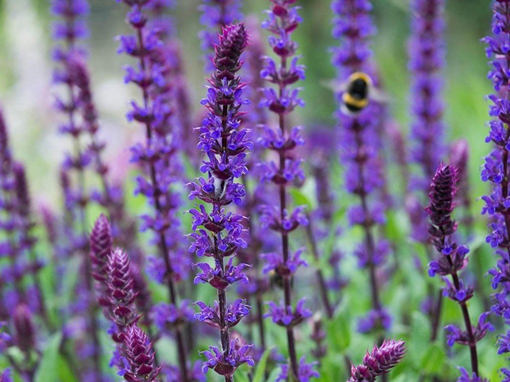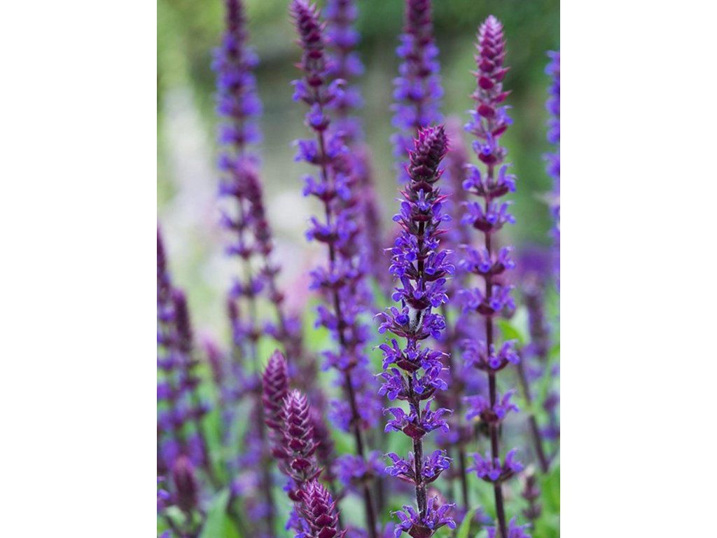 Salvia nemorosa 'Salvatore Blue' - eine Lippenblütler-Pflanze, die ursprünglich aus wärmeren Regionen Mittel- und Südosteuropas sowie Westasiens stammt und dort auf sonnigen Hängen, trockenen Wiesen und steinigen Steppenrändern mit guter Drainage wächst. Die Sorte 'Salvatore Blue' stammt aus der Züchtung von PanAmerican Seed und wurde als samenfeste Alternative zu vegetativ vermehrten Salbei eingeführt. Bildet dichte, kompakte Büschel mit stärker verzweigten Stielen, zur Blütezeit etwa 30–45 cm hoch und 25–35 cm breit. Die Blätter sind länglich-eiförmig, fein runzlig, mittelgrün und beim Zerreiben stark aromatisch. Von Juni bis Juli erscheinen lange, schlanke Ähren mit dunkelblauen zweilippigen Blüten, die sich von unten nach oben allmählich öffnen. Dunkle Kelche und Stiele verlängern den Farbeffekt auch nach dem Verblühen der einzelnen Blüten. Bei rechtzeitigem Rückschnitt nach der ersten Blüte setzt die Pflanze oft erneut an und die Blüte verlängert sich bis in den August oder September. Sie ist ausgesprochen bienenfreundlich, wird auch von Schmetterlingen besucht und die Blütenstände kommen in Sommersträußen zur Geltung. In Staudenkompositionen passt sie gut zu Lavendel, Katzenminze, Schafgarbe und Ziergräsern, bei Rosen erzeugt sie einen vertikalen Rhythmus und festigt natürlich die Beetränder.
