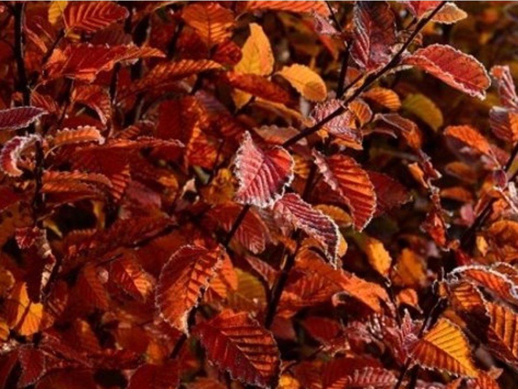 Feldahorn 'Orange Retz' - ein Laubbaum aus der Familie der Birkengewächse, der für seine ungewöhnlich ausgeprägte orange Herbstfärbung geschätzt wird. Die Sorte entstand in Frankreich durch eine Selektion von J. Blondeau und wurde von den Baumschulen Pépinières Minier um die Jahrtausendwende in das europäische Sortiment aufgenommen. Das Wachstum ist aufrecht und kompakt, die Krone ist in der Jugend schmal eiförmig bis kegelförmig, später breiter, wirkt dabei auch ohne häufiges Formen glatt. Nach 10 Jahren erreicht er oft etwa 6 m, im Erwachsenenalter bewegt er sich je nach Standort normalerweise auf etwa 8–10 m Höhe und 3–5 m Breite. Die Blätter sind eiförmig, deutlich geädert und doppelt gesägt, treiben im Frühjahr mit bronzefarbenem Anflug aus, sind im Sommer leuchtend grün und gehen ab September in orange bis orange-rote Töne über. Nach dem herbstlichen Abtrocknen verbleiben oft Teile des Laubes bis in den Winter an den Zweigen, sodass der Baum auch außerhalb der Vegetationsperiode einen feinen Sichtschutz bildet. Im April bis Mai erscheinen unauffällige Kätzchen. In der Gartengestaltung wird er als Solitär, in kleineren Alleen auch als formbares Element an Eingängen eingesetzt, wo das orange Laub die Achse des Weges betont. Der Stamm ist grau und relativ glatt, junge Triebe sind fest, was auch im Winter zu einer klaren Silhouette beiträgt. In Beständen bildet die Hainbuche normalerweise keine Dornen und gilt nicht als giftig. Abgefallenes Laub lässt sich gut kompostieren und verbessert als Laubkompost die Bodenstruktur, was bei Hainbuchen ein praktischer, oft übersehener Vorteil ist.