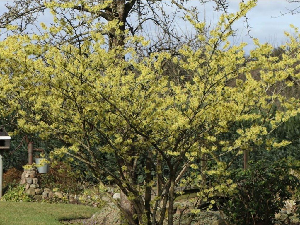 Pflege: Ein geschützter Standort in voller Sonne oder leichtem Halbschatten ist vorteilhaft, um die reiche Blüte und die satten Herbstfarben zu fördern. Der Strauch bevorzugt sauren bis neutralen, humosen, mäßig feuchten, aber durchlässigen Boden mit einem pH-Wert von etwa 5,0-6,5 ohne ständige Staunässe. In schwereren Böden profitiert ein Hochbeet mit Torf- und Kompostzugabe sowie eine Mulchschicht, die Temperaturschwankungen und Verdunstung reduziert. Die Setzlinge werden von März bis Mai oder im Herbst von September bis November mit einem Abstand von etwa 2,5-3 m gepflanzt, damit die Pflanze genügend Platz zur vollen Entfaltung ihrer Krone hat. Die Bewässerung ist in den ersten Jahren nach der Pflanzung und bei längerer Sommertrockenheit am wichtigsten, wobei eine tiefere, weniger häufige Bewässerung gewählt wird; bei älteren Exemplaren ist das Wurzelsystem bereits widerstandsfähiger. Gedüngt wird sparsam, im Frühjahr genügt eine Schicht gut verrotteten Komposts oder ein langsam lösliches Düngemittel für Ziersträucher. Der Hexenstrauch verträgt nur einen leichten Formschnitt unmittelbar nach der Blüte, wobei vor allem beschädigte und sich kreuzende Äste entfernt werden; ältere Pflanzen regenerieren sich von stärkeren Eingriffen schlechter. Unter unseren Bedingungen ist der Strauch bis -25 °C frosthart, junge Pflanzen schätzen jedoch eine Wintermulchschicht im Wurzelbereich und Windschutz. Im Allgemeinen handelt es sich um eine gesunde Art, die wenig von Schädlingen befallen wird. In übermäßig feuchten Böden können Pilzkrankheiten der Wurzeln oder Rinde auftreten, denen eine gute Drainage und eine geeignete Standortwahl vorbeugen. Bei geeignetem Standort und grundlegender Pflege wird der Hexenstrauch zu einer langlebigen Dominante des Wintergartens und einer zuverlässigen Quelle für Blüten für frühe Frühlingssträuße.