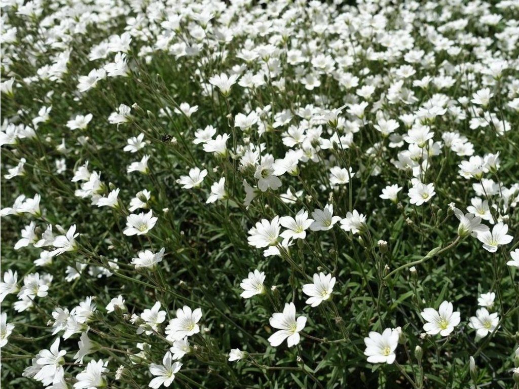 Steinnelke 'Albus' - eine niedrige, langlebige Staude, ursprünglich von offenen, sonnigen Wiesen und felsigen Hängen Europas. Sie bildet von Natur aus dichte, kriechende Polster aus feinen, linealen Blättern, die auch außerhalb der Blütezeit dekorativ bleiben. Im ausgewachsenen Zustand erreicht sie eine Höhe von etwa 10–15 cm und eine Breite von 30–40 cm, wobei sie allmählich Fugen zwischen Steinen füllt und weich die Ränder von Wegen säumt. Die Blüten sind klein, fünfzählig, reinweiß und werden auf dünnen Stielen über den Blättern getragen. Die Hauptblütezeit ist im Juni und Juli, oft mit einem Nachklang bis in den August, je nach Sommerverlauf. Die Pflanze ist bienenfreundlich und lässt sich gut mit Thymian, Fetthenne, Steinkraut, niedrigen Schwingeln oder Lavendel kombinieren, wobei der weiße Ton bunte Steingartenmischungen abmildert. Der Duft der Blüten ist zart, typisch nach Nelken, am besten wahrnehmbar an warmen Abenden. Der Pflanzenbestand wirkt wie ein niedriger, weicher Teppich, der Unkraut unterdrückt und die Ränder von Beeten ohne häufigen Pflegeaufwand stabilisiert. Als Bonus duftet sie sehr angenehm. Sie schmückt den Steingarten, Mauern oder die Ränder von Staudenbeeten. Sie sieht auch in einem Gefäß gut aus.