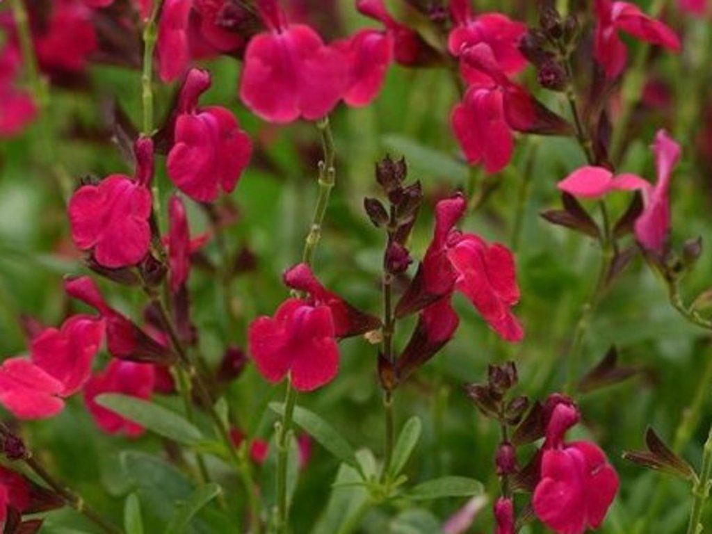 Salbei Greggii Mirage 'Burgundy' - Ein Ziersalbei, der bis zu 40 cm hoch wird. Eine Staude, die sich für gemischte Staudenbeete eignet. Eine Gruppe mehrerer Pflanzen erzeugt einen auffälligen Farbeffekt. Gedeiht an einem sonnigen Standort in durchlässigem, lehmig-sandigem Gartenboden. Frosthart. Diese Sorte hat purpurrote Blüten, die sehr schön und elegant sind. Ihre Blätter sind mittelgrün. Blüht von Juni bis September.