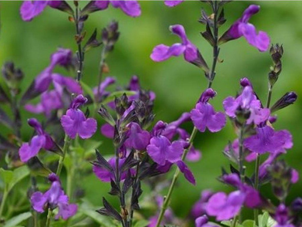 Salvia greggii Mirage 'Violet' - Zieriger Salbei, der bis zu 40 cm hoch wird. Eine Staude, die sich für gemischte Staudenbeete eignet. Eine Gruppe mehrerer Pflanzen erzeugt einen auffälligen Farbeffekt. Gedeiht an einem sonnigen Standort in durchlässigem, lehmig-sandigem Gartenboden. Frosthart. Die Sorte hat leuchtend violette Blüten, die sehr schön und elegant sind. Ihre Blätter sind mittelgrün. Blüht von Juni bis September.