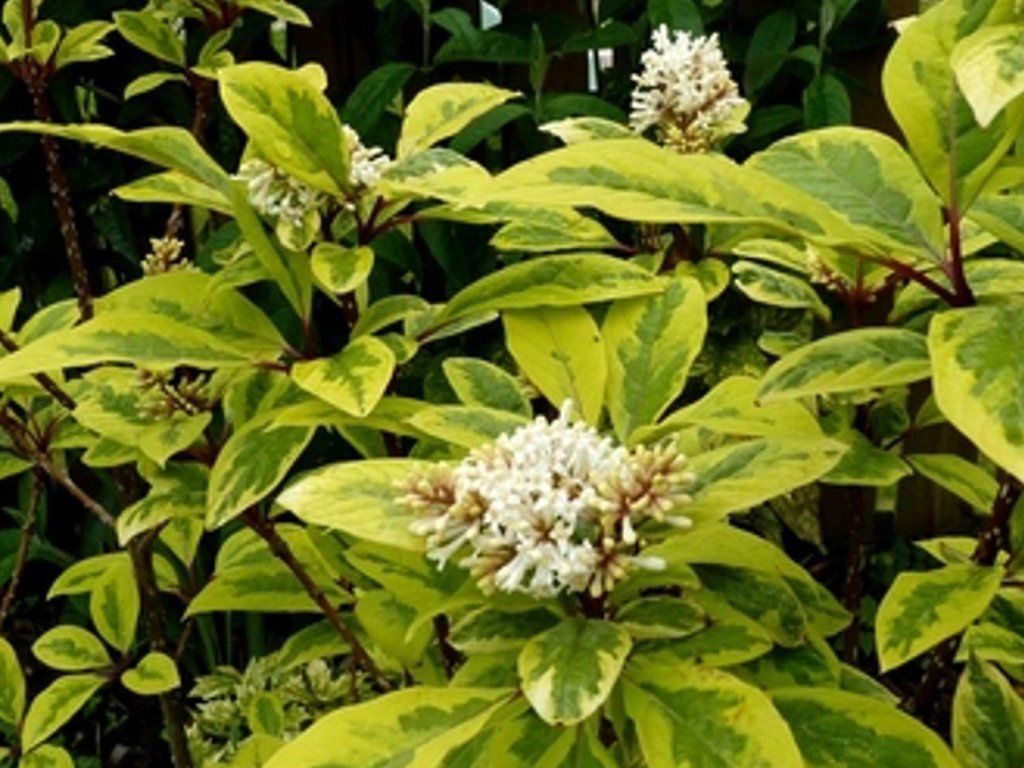 Himalaya-Flieder 'Aureovariegata' - ein ausladender Strauch aus dem Himalaya, genauer gesagt aus Nepal. Er bildet einen großen, laubabwerfenden Strauch, der 2 bis 5 m hoch wird, je nach Anbau. Seine Blüten sind sehr duftend, röhrenförmig und schneeweiß. Sie blühen im Juni. Attraktiv sind auch seine panaschierten Blätter in frischem Grün mit einem dunkleren grünen Zentrum. Es handelt sich um eine seltene Sorte, die hauptsächlich in dendrologischen Sammlungen vorkommt.