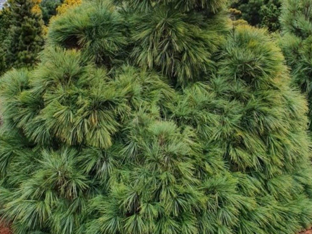 Himalaya-Zeder - eine sehr dekorative, höhere Kiefernart, die im ausgewachsenen Zustand je nach Kulturbedingungen eine Höhe von bis zu 15 m und eine Breite von 10 m erreicht. Das Wachstum des Baumes ist kegelförmig. Ihr einzigartiges Aussehen verdankt sie vor allem den sehr langen, silbrig-blauen und hängenden Nadeln. Die Zapfen sind bis zu 25 cm lang und stark harzig. In der Reife braun gefärbt. Die Rinde an jungen Teilen ist graugrün, ältere ist aschgrau. Die alte Borke blättert in Plättchen ab. Erfüllt die Aufgabe einer Solitärpflanze in jedem mittleren und größeren Garten.
