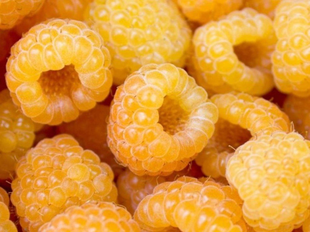 Himbeere 'Golden Queen' - eine Sorte mit attraktiven gelb-orangen Früchten, die sich durch süßen, aromatischen und angenehmen Geschmack auszeichnen. Der Strauch wird 150-200 cm hoch. Die Früchte sind geeignet für den direkten Verzehr, Einfrieren, Einkochen und die Zubereitung von Marmeladen oder Sirupen. Diese Sorte ist mittelfrüh, mit einer Erntezeit von Juli bis September. Widerstandsfähig gegen gängige Himbeerkrankheiten.