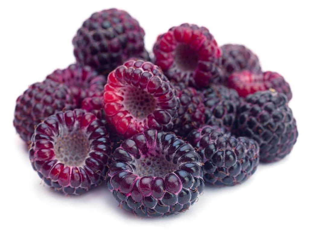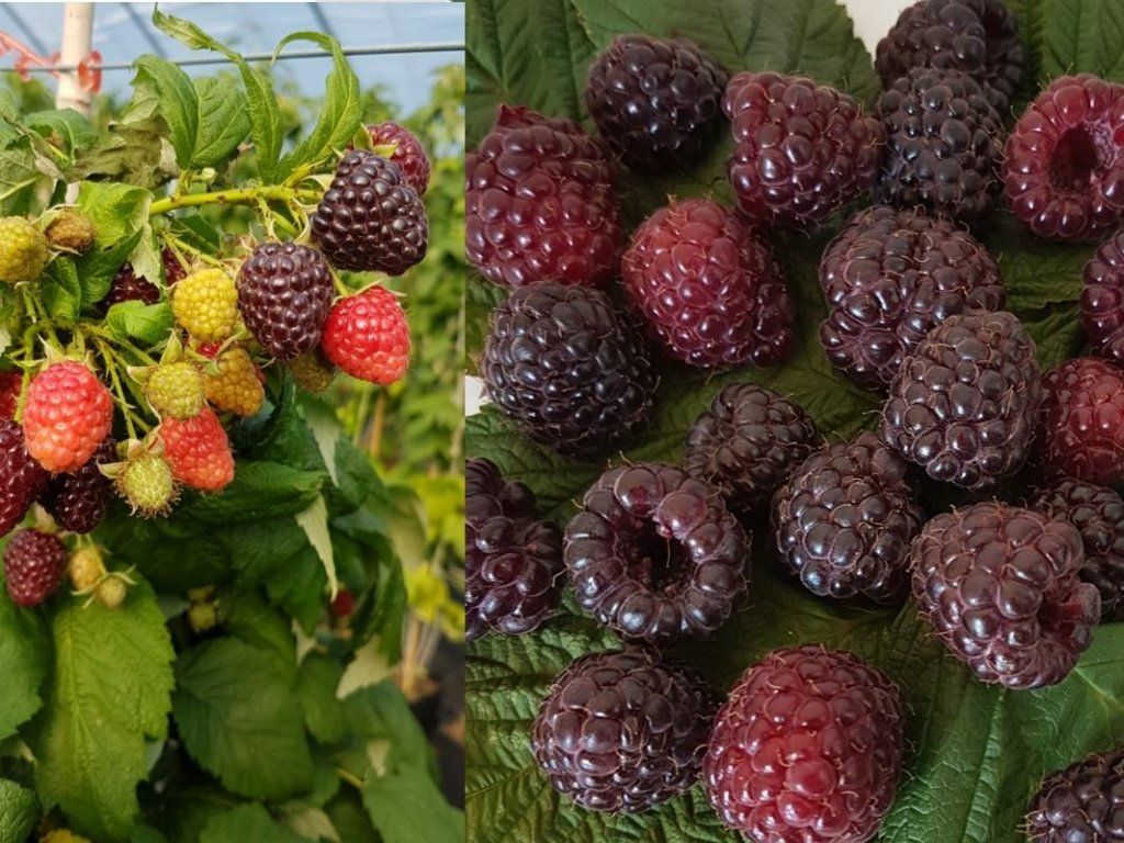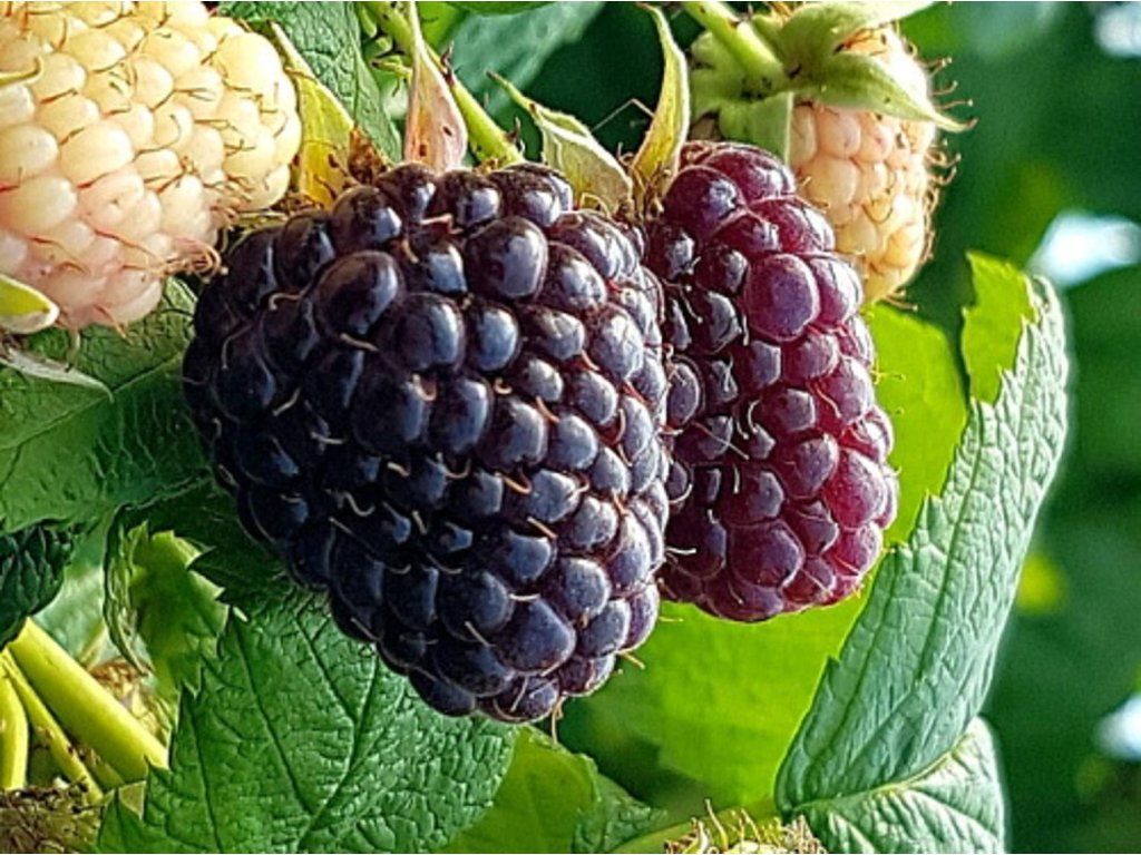 Himbeere 'Heban' (Black Polka) - neue Sorte mit dunkelvioletten bis fast schwarzen Früchten. Die Blätter sind typisch für Himbeeren geformt und haben eine frische grüne Farbe. Die Triebe können bis zu 2 m lang werden. Trägt an einjährigen und zweijährigen Ruten Früchte. Die Früchte sind leicht länglich, mittelgroß und glänzend. Ihre Färbung ist dunkelviolett bis schwarz. Geschmacklich sind sie ausgewogen, süß mit einem sehr angenehmen Aroma. An zweijährigen Ruten ernten wir die Früchte bereits Ende Juni, an einjährigen Ruten erhalten wir einen Teil der Ernte Ende August.